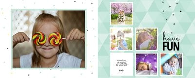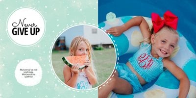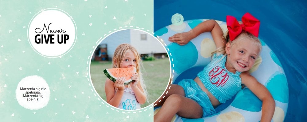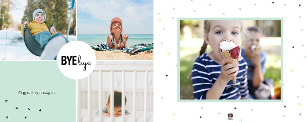 Oto propozycja dla miłośników koloru miętowego! W tym kolorze znajdziemy tu nie tylko tła, ale także ramki i dodatki. Miętę przełamaliśmy bielą dodatków i czernią czcionek. Cały szablon finalnie prezentuje się przepięknie! Dodaj ulubione zdjęcia i zaprojektuj kolejną fotoksiążkę do swojej kolekcji! Szablon typu "everyday life", nadający się na wiele okazji.
