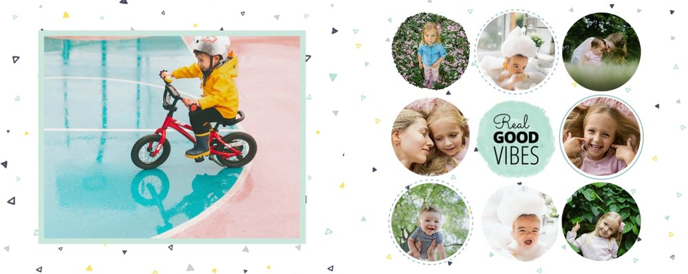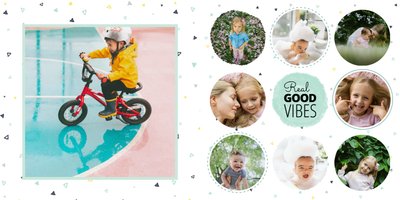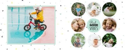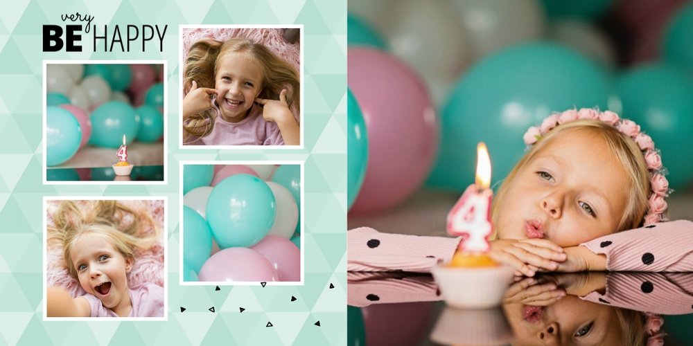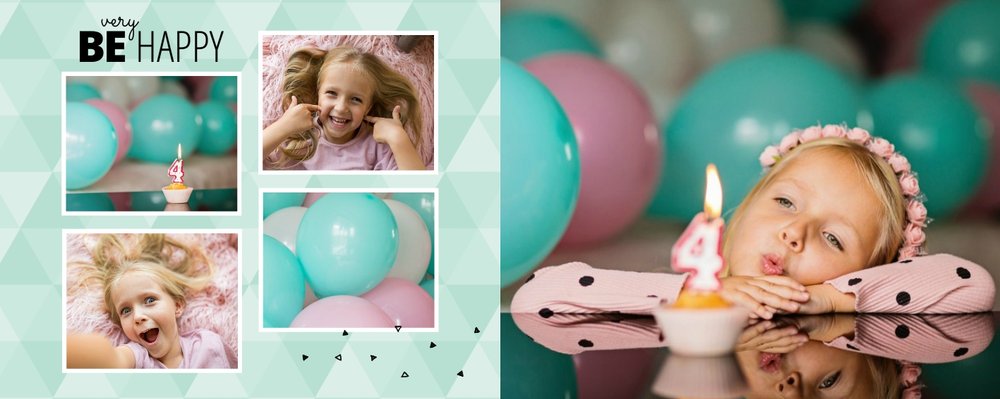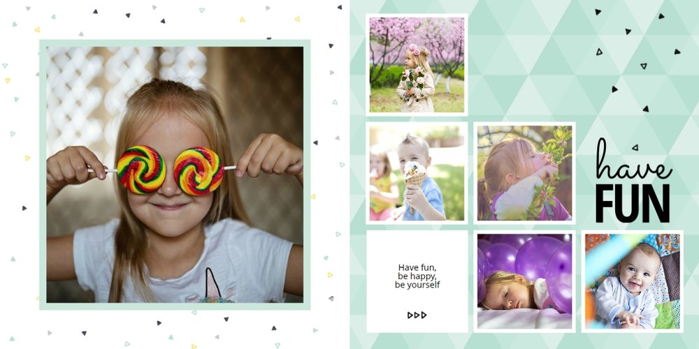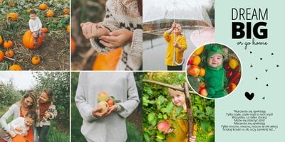 Oto propozycja dla miłośników koloru miętowego! W tym kolorze znajdziemy tu nie tylko tła, ale także ramki i dodatki. Miętę przełamaliśmy bielą dodatków i czernią czcionek. Cały szablon finalnie prezentuje się przepięknie! Dodaj ulubione zdjęcia i zaprojektuj kolejną fotoksiążkę do swojej kolekcji! Szablon typu "everyday life", nadający się na wiele okazji.