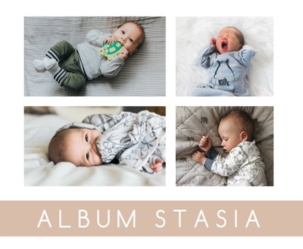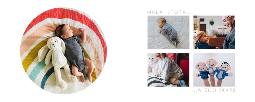 Stwórz pamiątkę Twojego dziecka na długie lata. Z szablonem "Minimalistyczny album dziecka" będzie to proste i przyjemne. Wystarczy, że do projektu fotoalbumu dodasz zdjęcia pociechy, uzupełnisz o napisy i Twój fotoalbum jest gotowy. Wnętrze szablonu jest w pełni minimalistyczne oraz wzbogacone o ciekawe układy graficzne i delikatną nutę kolorystyczną, która idealnie pasuje zarówno do chłopca, jak i dziewczynki.