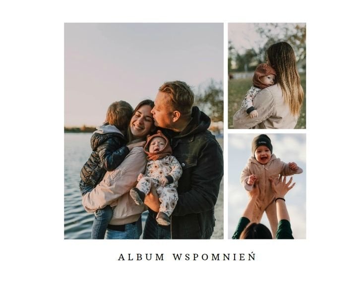 Z szablonem fotoalbumu "Minimalistyczny album na zdjęcia" w szybki i łatwy sposób stworzysz idealną pamiątkę dla każdego rodzaju zdjęć. Większość stron zajmują komórki zdjęciowe dostosowane pod pionowe zdjęcia z telefonu. Każdy układ jest również przygotowany pod różną ilość zdjęć, dzięki czemu bardzo łatwo jest dopasować szablon pod zarówno małą, rodzinną sesję zdjęciową, jak i wiele zdjęć z całego roku. Minimalistyczny wygląd oraz estetyczne układy zdjęciowe dodają całości elegancji oraz sprawiają, że szablon staje się jeszcze bardziej uniwersalny.