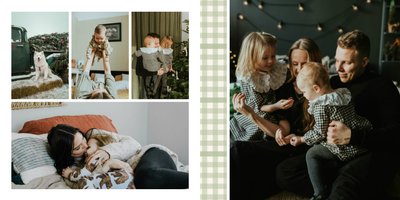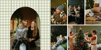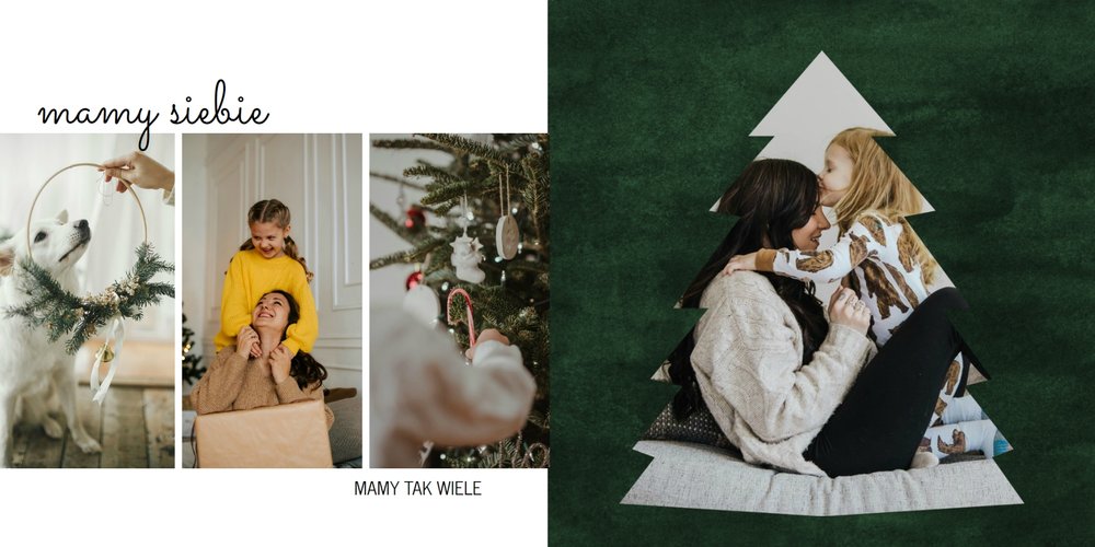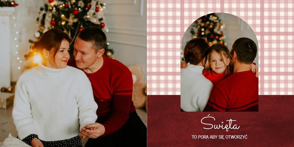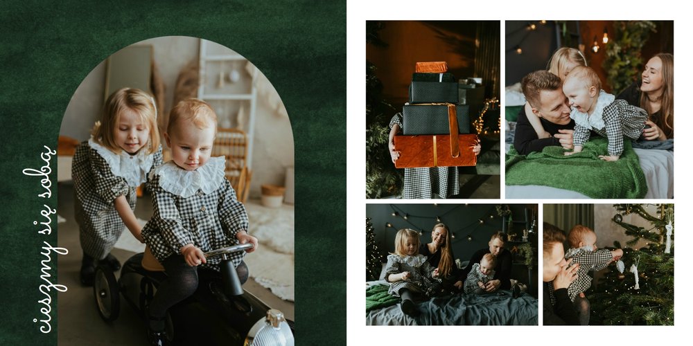 Fotoalbum z szablonem "Minimalistyczny prezent na Święta" to idealna propozycja na tegoroczny prezent pod choinkę. Klasyczna kolorystyka - głęboka czerwień i butelkowa zieleń - podkreślą świąteczny charakter rodzinnych zdjęć. Minimalistyczne tła w postaci obrusowej kratki i weluru dodadzą całości elegancki wygląd, a polaroidowe dodatki wniosą delikatną nutę retro. Uzupełnij szablon fotoalbumu "Minimalistyczny prezent na Święta" rodzinnymi fotografiami - zarówno z sesji świątecznej, jak i codziennych chwil.