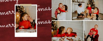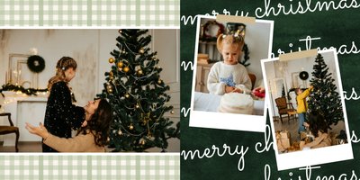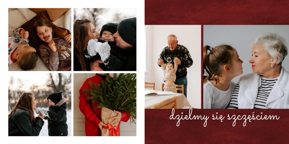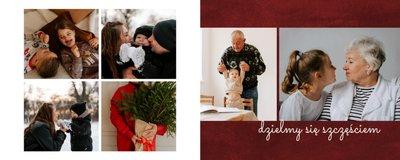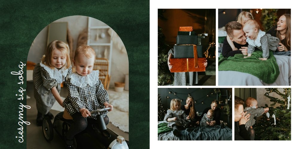 Fotoalbum z szablonem "Minimalistyczny prezent na Święta" to idealna propozycja na tegoroczny prezent pod choinkę. Klasyczna kolorystyka - głęboka czerwień i butelkowa zieleń - podkreślą świąteczny charakter rodzinnych zdjęć. Minimalistyczne tła w postaci obrusowej kratki i weluru dodadzą całości elegancki wygląd, a polaroidowe dodatki wniosą delikatną nutę retro. Uzupełnij szablon fotoalbumu "Minimalistyczny prezent na Święta" rodzinnymi fotografiami - zarówno z sesji świątecznej, jak i codziennych chwil.