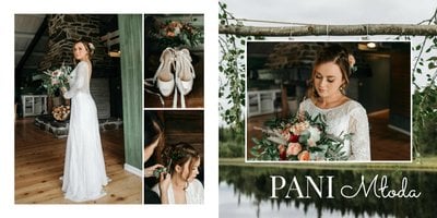 Szablon zawiera specjalnie dobrane układy, z przewagą większych komórek zdjęciowych, aby móc w pełni cieszyć się widokiem pięknych zdjęć od fotografa ślubnego. Każdy taki układ to połączenie minimalizmu i nowoczesnej elegancji. Klasyczne białe strony zostały dodatkowo przyozdobione tekstami. Brak dodatków oraz mocniejszych teł pozwala skupić się na tym co w fotoalbumie jest najważniejsze - na Waszych wspomnieniach.