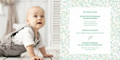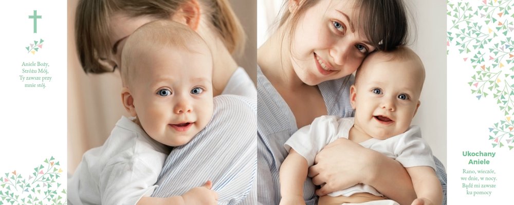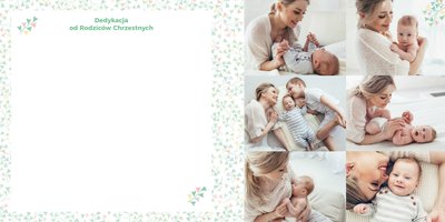 Z szablonem "Mój pierwszy sakrament" przygotujesz piękną pamiątkę z Chrztu Świętego Twojego dziecka lub stworzysz oryginalny prezent dla Chrześniaka. Przejrzyj foldery i przygotuj zdjęcia, z którymi zaprojektujesz wyjątkowy fotoalbum. Z całą pewnością będzie on pamiątką na wiele, wiele lat. Wnętrze szablonu zapewnia miejsca na piękne zdjęcia z sakramentu przyjęcia chrztu oraz wzruszające cytaty. Wszystko to sprawi, że fotoalbum będzie wzruszać obdarowanych. Szablon "Mój pierwszy sakrament" to minimalistyczny szablon, w którym znajdziesz delikatne elementy graficzne oraz mnóstwo miejsca na fotografie z tego wielkiego dnia.