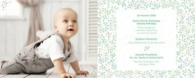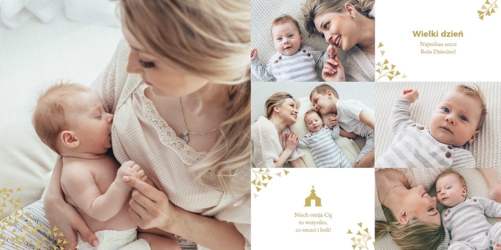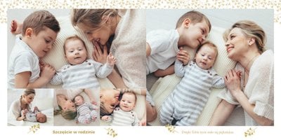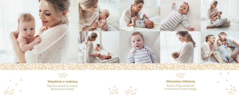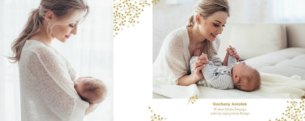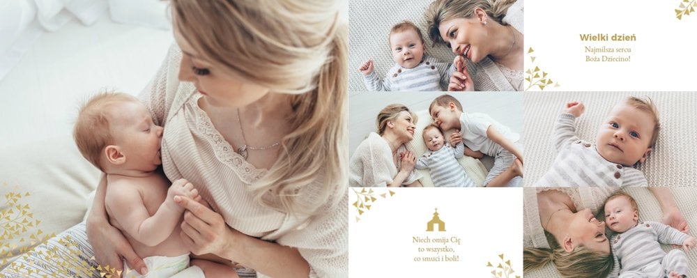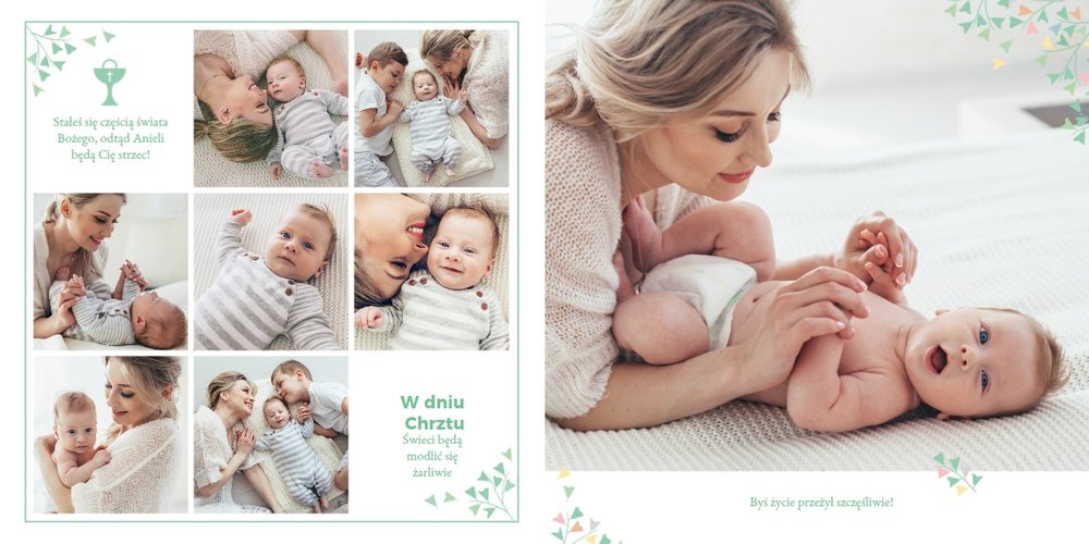 Z szablonem "Mój pierwszy sakrament" przygotujesz piękną pamiątkę z Chrztu Świętego Twojego dziecka lub stworzysz oryginalny prezent dla Chrześniaka. Przejrzyj foldery i przygotuj zdjęcia, z którymi zaprojektujesz wyjątkowy fotoalbum. Z całą pewnością będzie on pamiątką na wiele, wiele lat. Wnętrze szablonu zapewnia miejsca na piękne zdjęcia z sakramentu przyjęcia chrztu oraz wzruszające cytaty. Wszystko to sprawi, że fotoalbum będzie wzruszać obdarowanych. Szablon "Mój pierwszy sakrament" to minimalistyczny szablon, w którym znajdziesz delikatne elementy graficzne oraz mnóstwo miejsca na fotografie z tego wielkiego dnia.