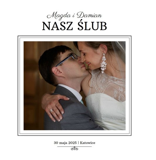 Szablon klasyczny sprawdzi się idealnie w przypadku Młodych Par lubiących elegancję. Jasne barwy i delikatna, ślubna ornamentyka pozwolą wyeksponować piękne kadry i emocje towarzyszące uroczystości. Szablon sprawdzi się idealnie zarówno dla zdjęć kolorowych, w sepii, jak i czarno - białych. Idealny dla Młodych Par oraz jako podziękowanie dla Rodziców.