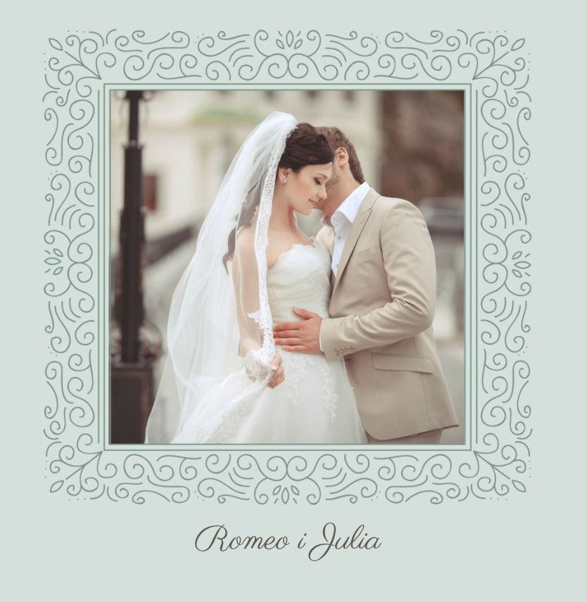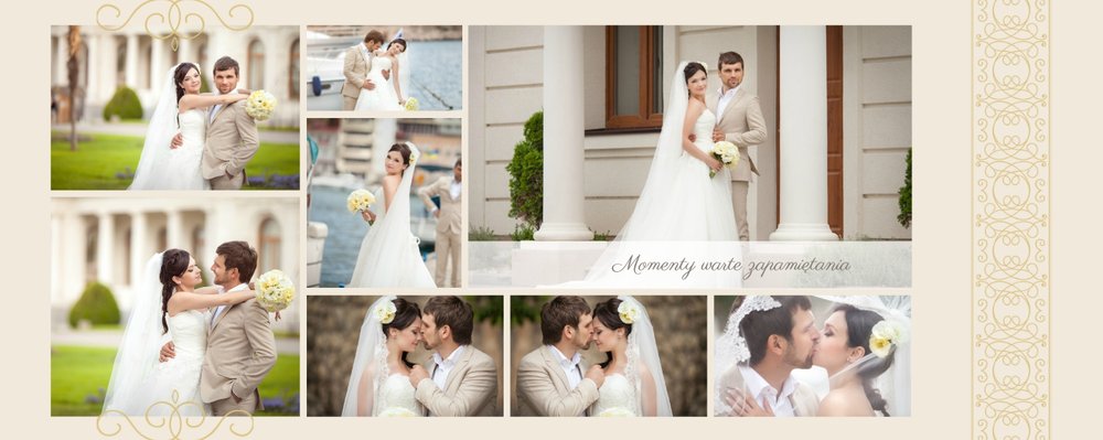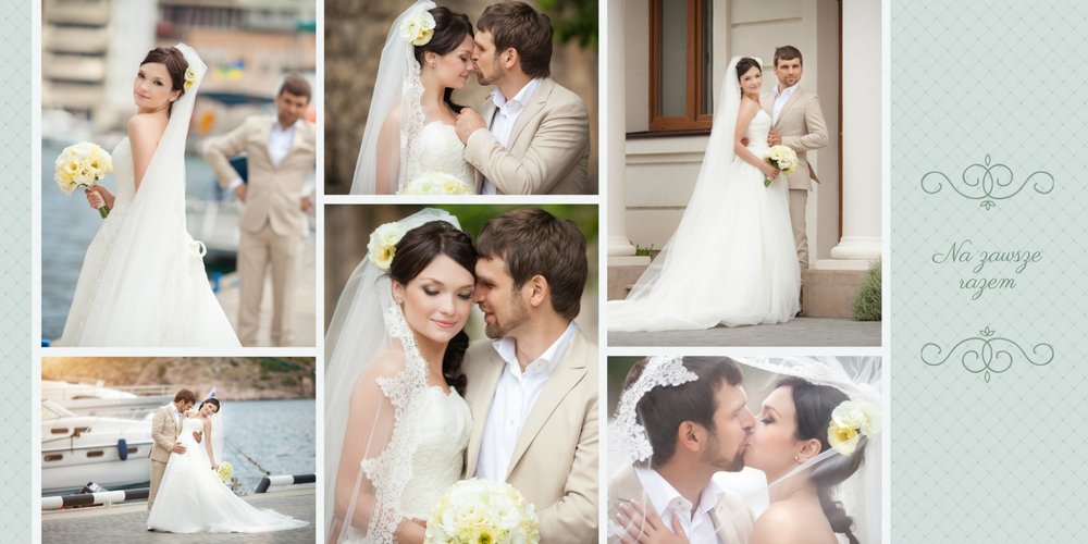 Szablon Dzień Ślubu idealnie sprawdzi się przy projektowaniu fotoksiążki ze ślubu i wesela. Dzięki niemu wydrukujesz wyjątkowe wspomnienia w pięknej formie i oprawie. Strony utrzymane są w kolorach jasnego turkusu, kremu i beżu, a elegancji dodają im piękne ornamenty, linie, wzory, ramki i monogramy. Szablon idealny jako podziękowanie dla Rodziców oraz pamiątka dnia ślubu. Szablon Dzień Ślubu tworzy serię razem z szablonami Dzień Chrztu Świętego oraz Dzień Komunii Świętej.