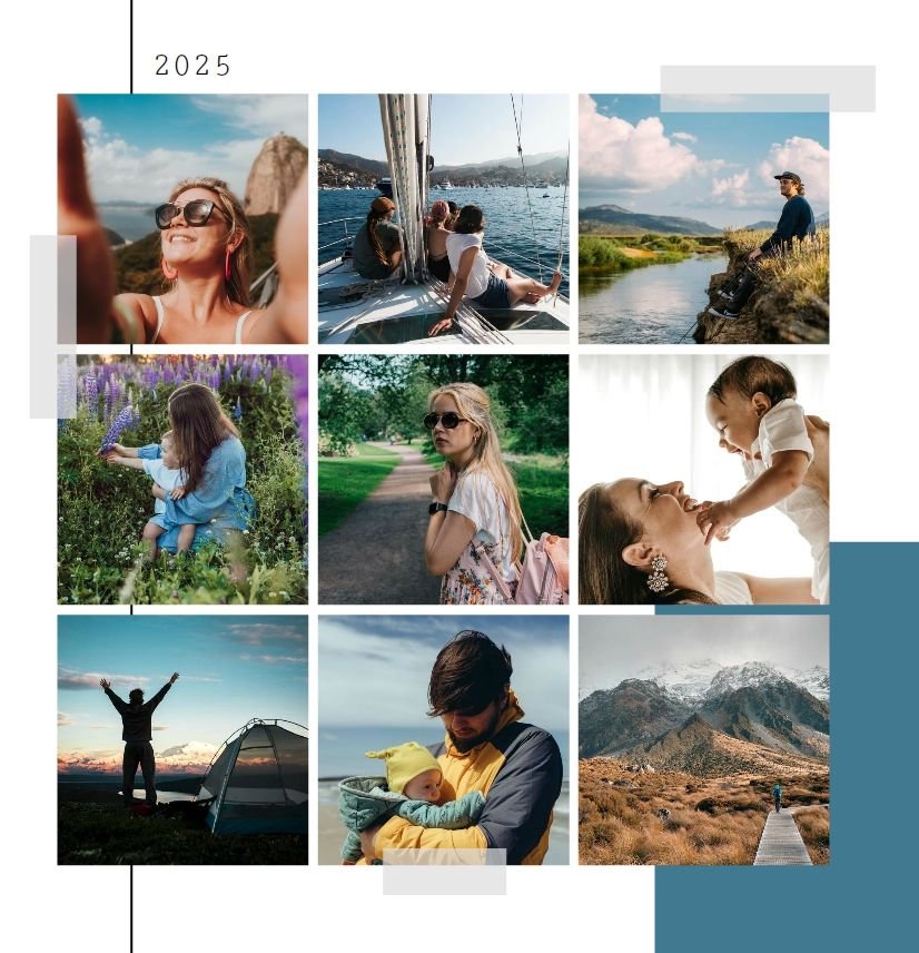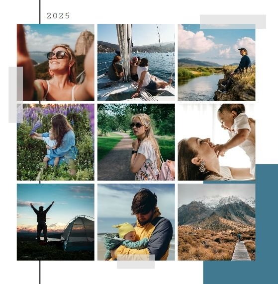 Szablon "Momenty 2022" to miejsce dla wszystkich chwil - małych i dużych. Uniwersalna kolorystyka i wygodne układy komórek zdjęciowych pozwolą Ci wypełnić projekt fotoalbumu w dosłownie kilka minut. Wybierz wszystkie swoje ulubione zdjęcia, które zrobiłeś w ciągu roku, i ułóż je na stronach projektu chronologicznie lub w losowej kolejności. Dopasuj podpisy miesięcy do wybranych zdjęć i gotowe! Twoje wspomnienia znalazły się w najlepszym dla nich miejscu. Bądź pewien, że za jakiś czas docenisz je jeszcze mocniej.