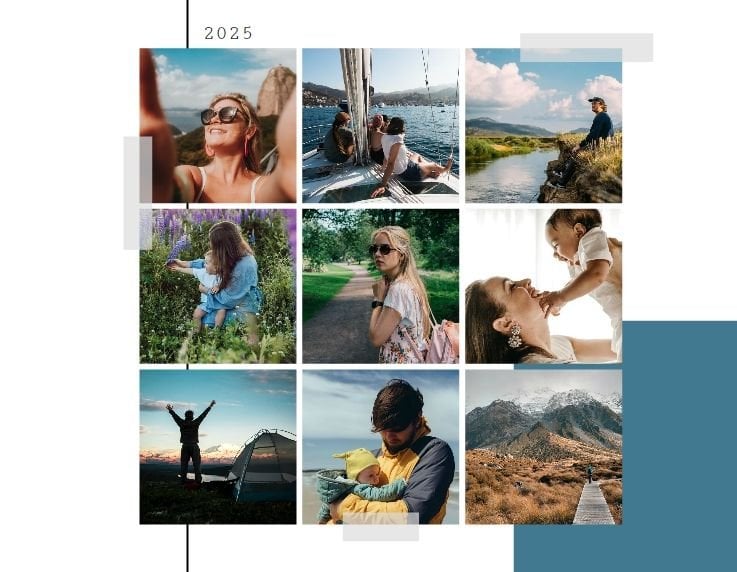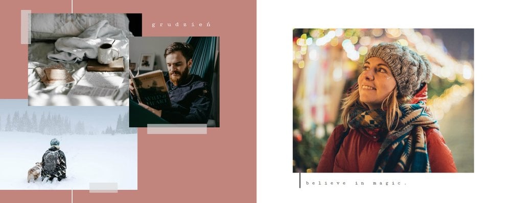 Szablon "Momenty 2022" to miejsce dla wszystkich chwil - małych i dużych. Uniwersalna kolorystyka i wygodne układy komórek zdjęciowych pozwolą Ci wypełnić projekt fotoalbumu w dosłownie kilka minut. Wybierz wszystkie swoje ulubione zdjęcia, które zrobiłeś w ciągu roku, i ułóż je na stronach projektu chronologicznie lub w losowej kolejności. Dopasuj podpisy miesięcy do wybranych zdjęć i gotowe! Twoje wspomnienia znalazły się w najlepszym dla nich miejscu. Bądź pewien, że za jakiś czas docenisz je jeszcze mocniej.