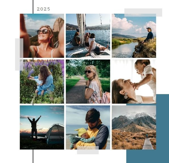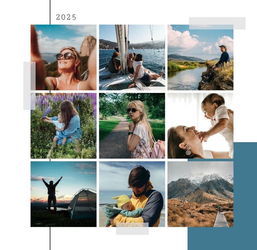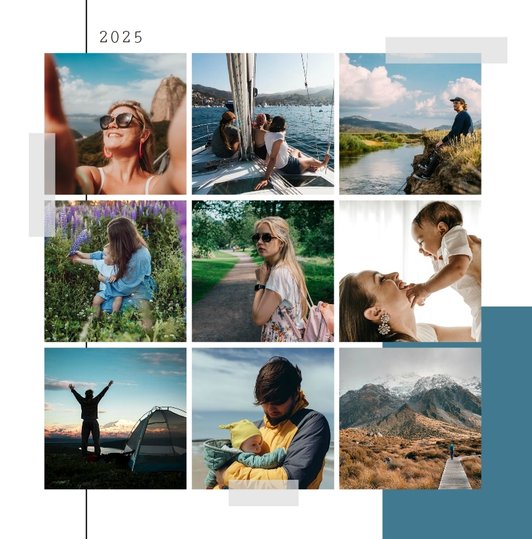 Szablon "Momenty 2022" to miejsce dla wszystkich chwil - małych i dużych. Uniwersalna kolorystyka i wygodne układy komórek zdjęciowych pozwolą Ci wypełnić projekt fotoalbumu w dosłownie kilka minut. Wybierz wszystkie swoje ulubione zdjęcia, które zrobiłeś w ciągu roku, i ułóż je na stronach projektu chronologicznie lub w losowej kolejności. Dopasuj podpisy miesięcy do wybranych zdjęć i gotowe! Twoje wspomnienia znalazły się w najlepszym dla nich miejscu. Bądź pewien, że za jakiś czas docenisz je jeszcze mocniej.
