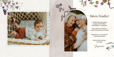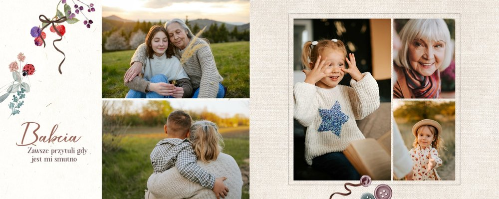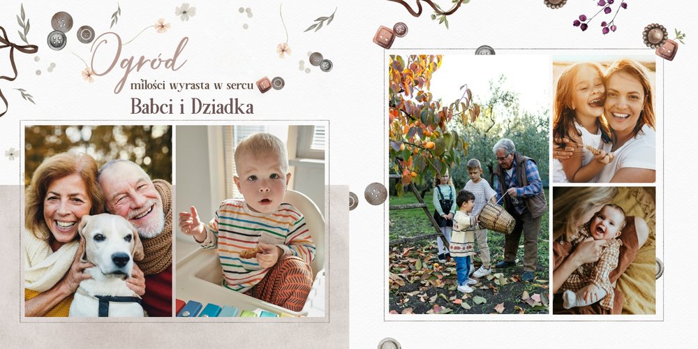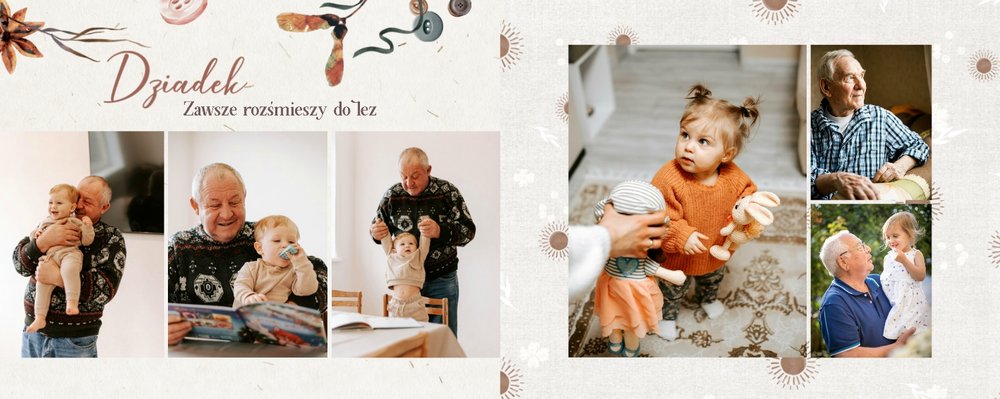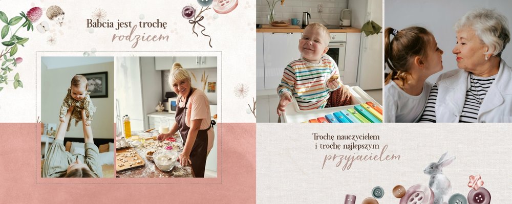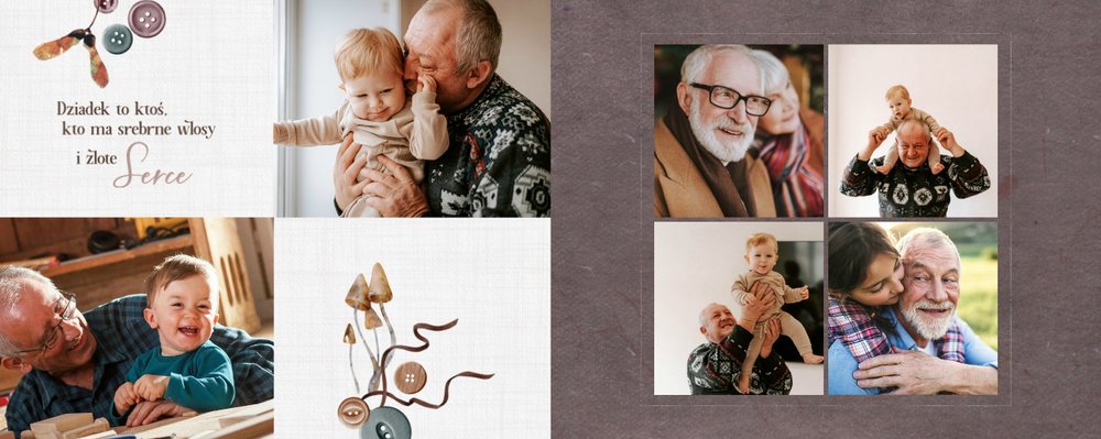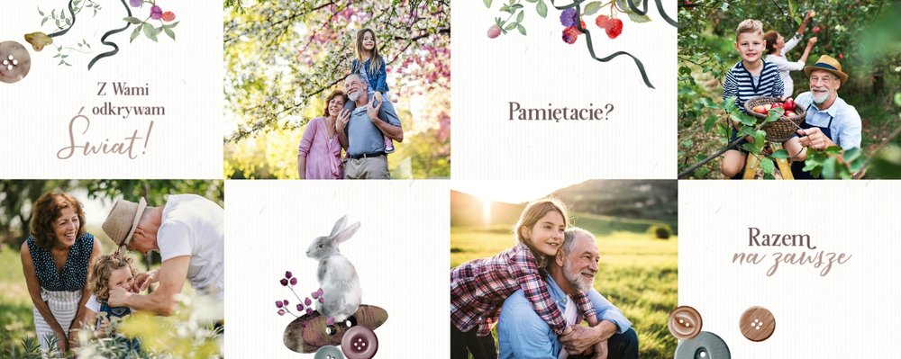 Dzień Babci i Dziadka to idealna okazja, aby razem z Twoim dzieckiem stworzyć wyjątkowy prezent, podarowany prosto od serca. Sposobem na wyrażenie swojej wdzięczności dla najbliższych jest podarowanie im najcenniejszych wspomnień zamkniętych w szablonie fotoalbumu "Na Dzień Babci i Dziadka".