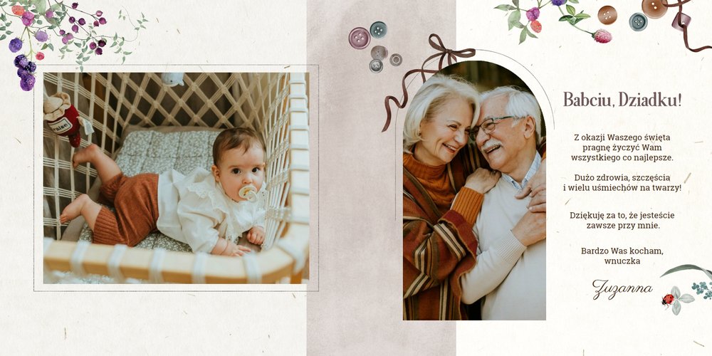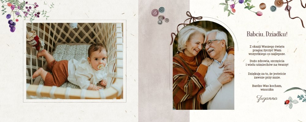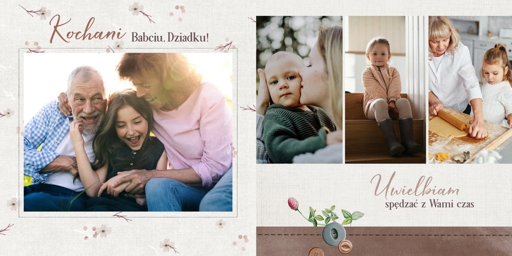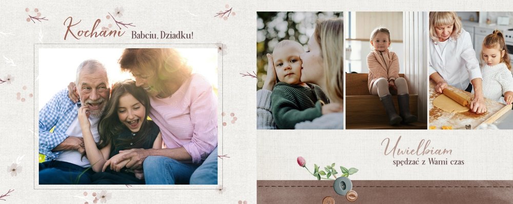 Dzień Babci i Dziadka to idealna okazja, aby razem z Twoim dzieckiem stworzyć wyjątkowy prezent, podarowany prosto od serca. Sposobem na wyrażenie swojej wdzięczności dla najbliższych jest podarowanie im najcenniejszych wspomnień zamkniętych w szablonie fotoalbumu "Na Dzień Babci i Dziadka".
