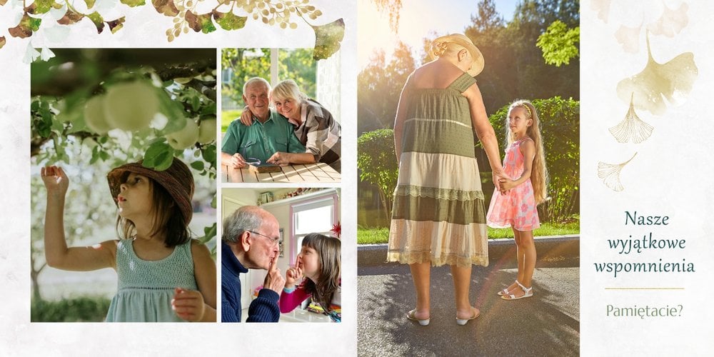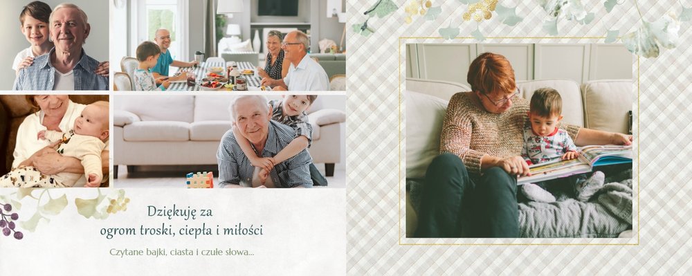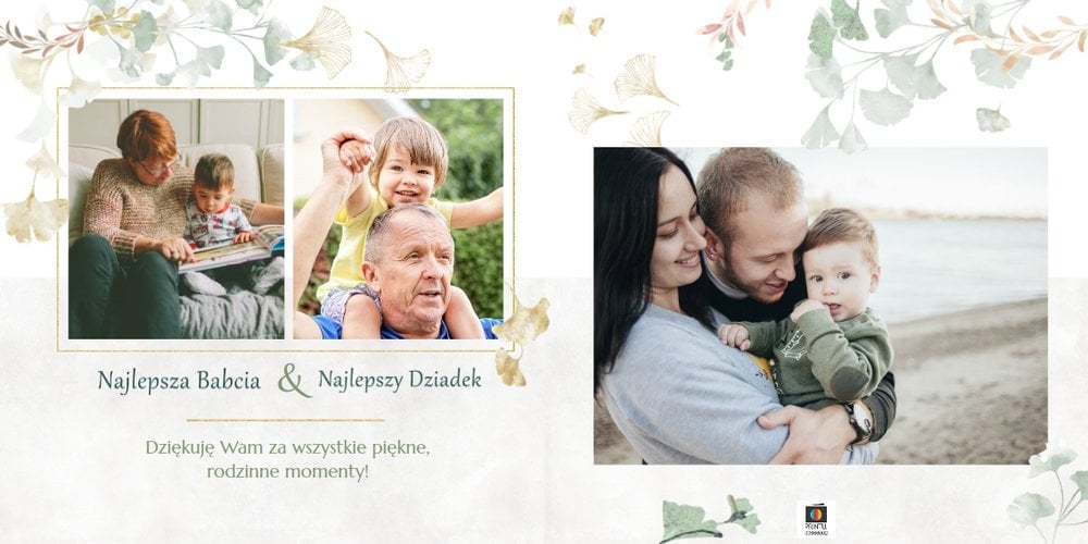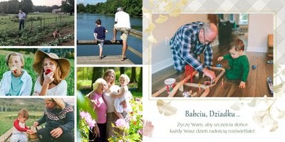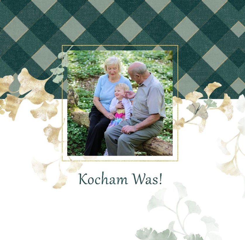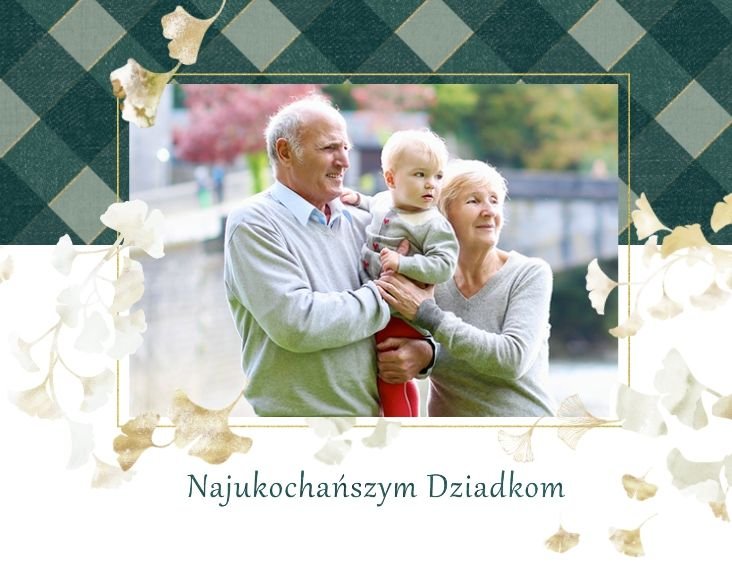 Szablon "Najukochańszym Dziadkom" to oryginalna kompozycja - połączenie ciemnej i eleganckiej kratki oraz wielobarwnego miłorzębu. Całość szablonu jest bardzo gustowna, co z całą pewnością przypadnie do gustu kochanym Dziadkom i idealnie wpasuje się w najzwyklejsze zdjęcia, również te z Twojego telefonu.