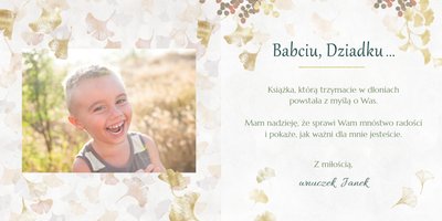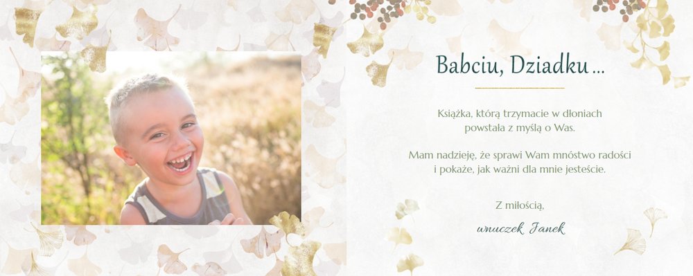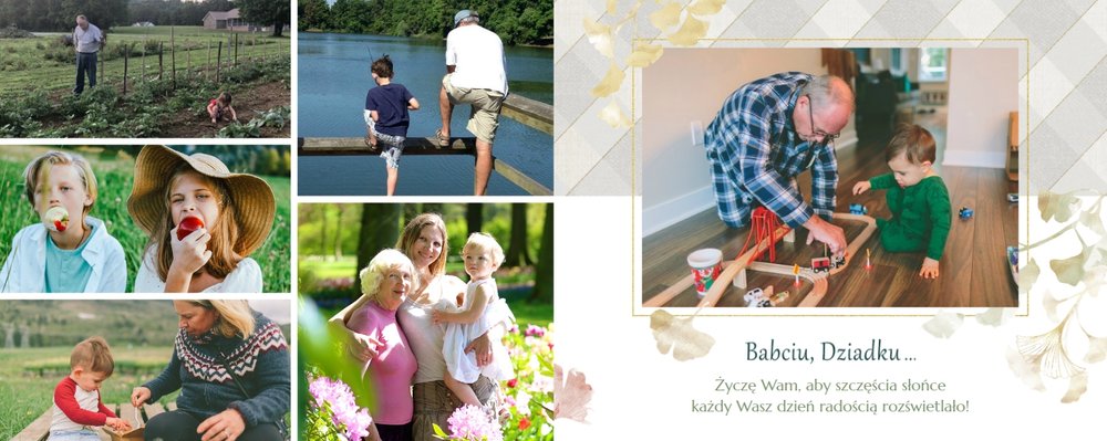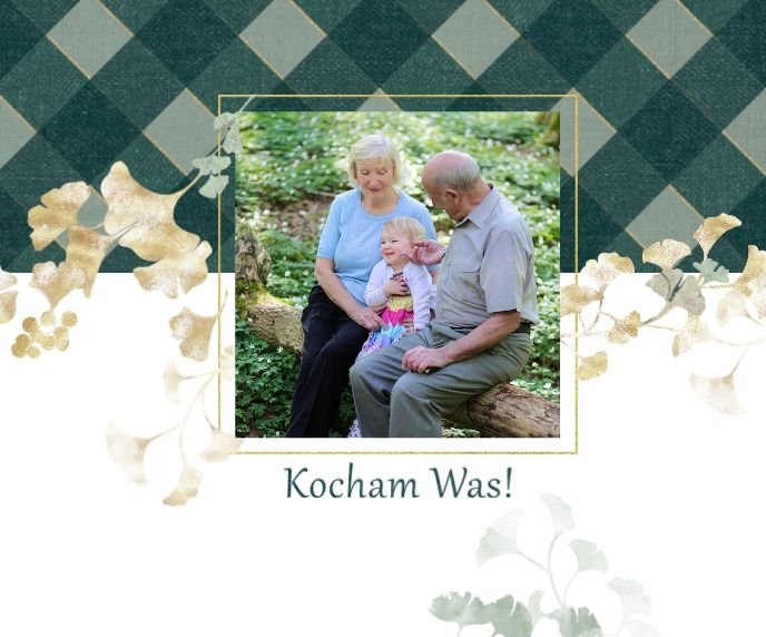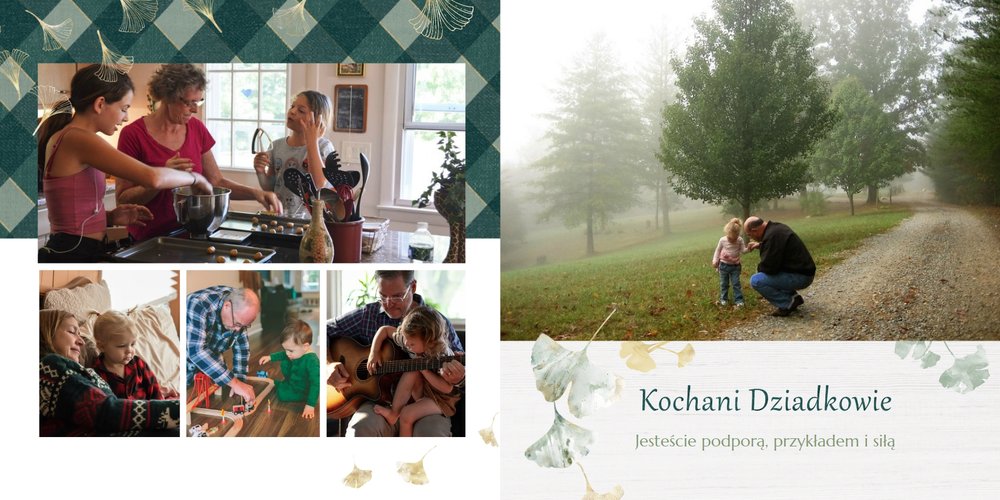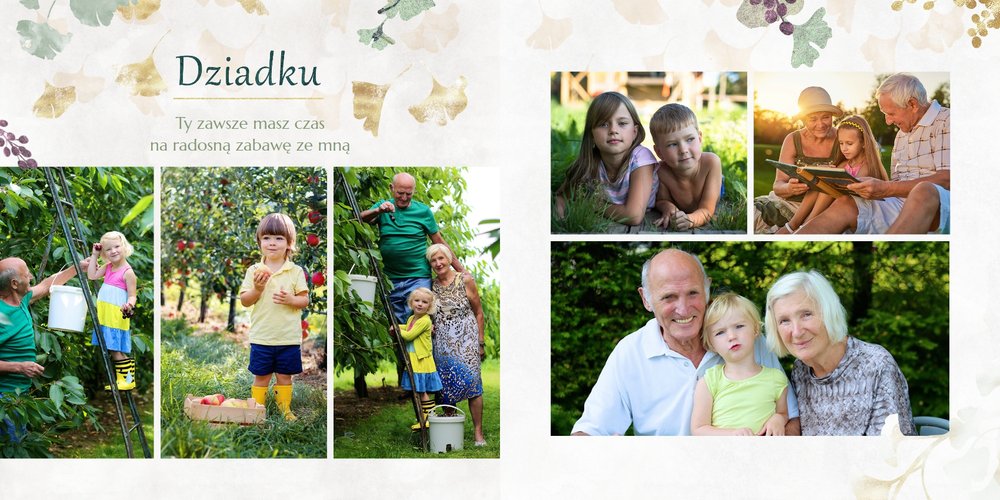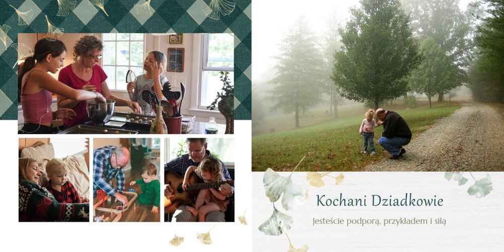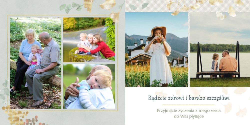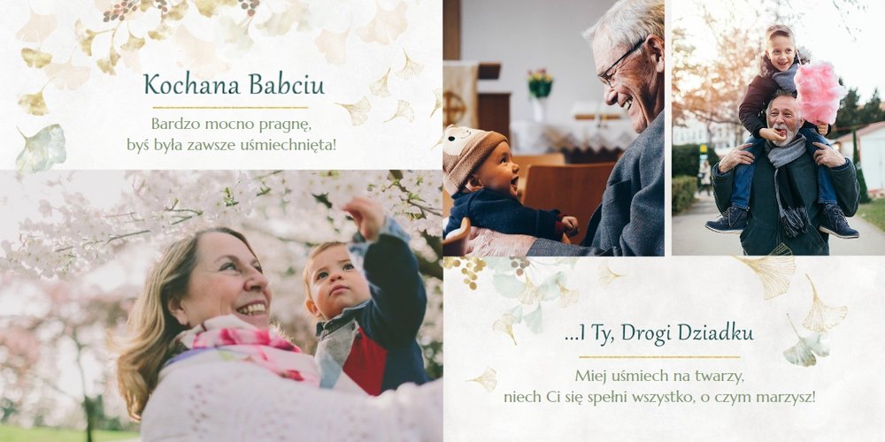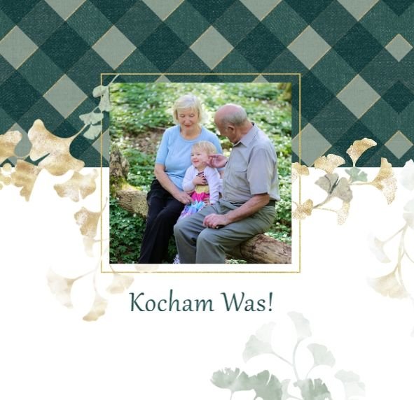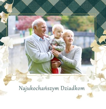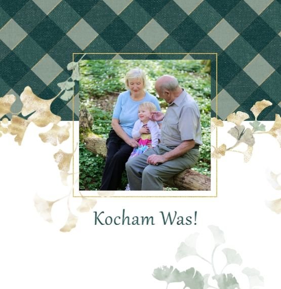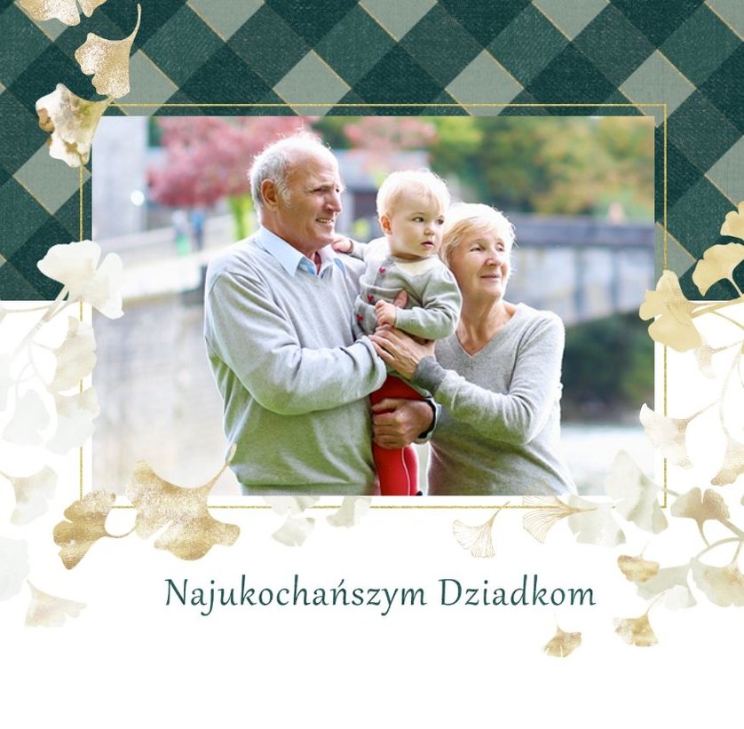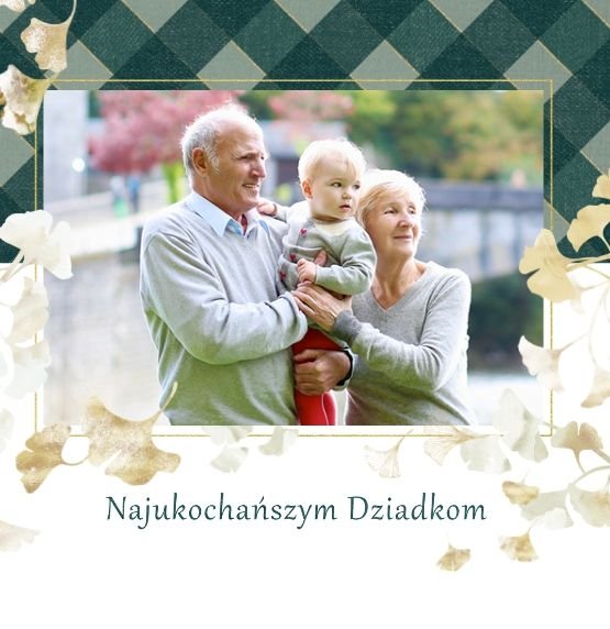 Szablon "Najukochańszym Dziadkom" to oryginalna kompozycja - połączenie ciemnej i eleganckiej kratki oraz wielobarwnego miłorzębu. Całość szablonu jest bardzo gustowna, co z całą pewnością przypadnie do gustu kochanym Dziadkom i idealnie wpasuje się w najzwyklejsze zdjęcia, również te z Twojego telefonu.