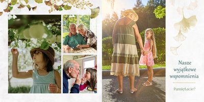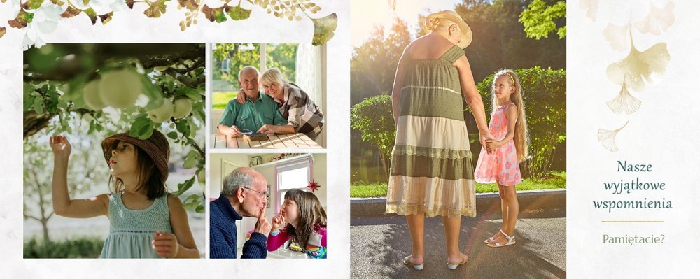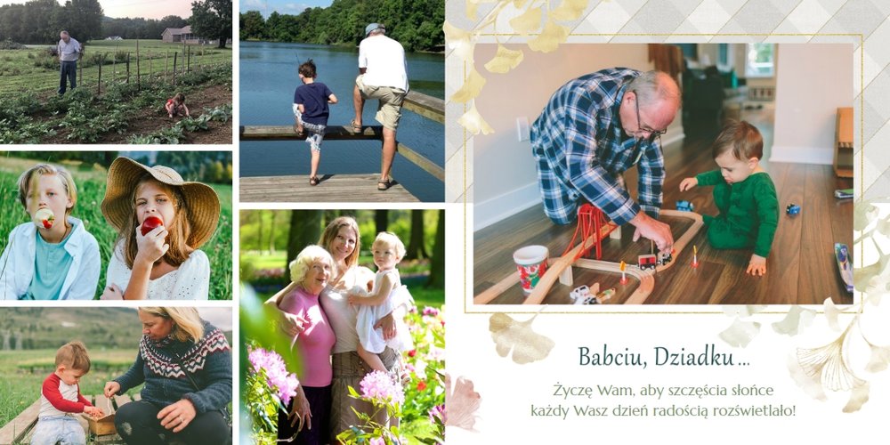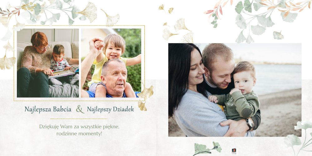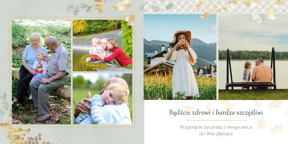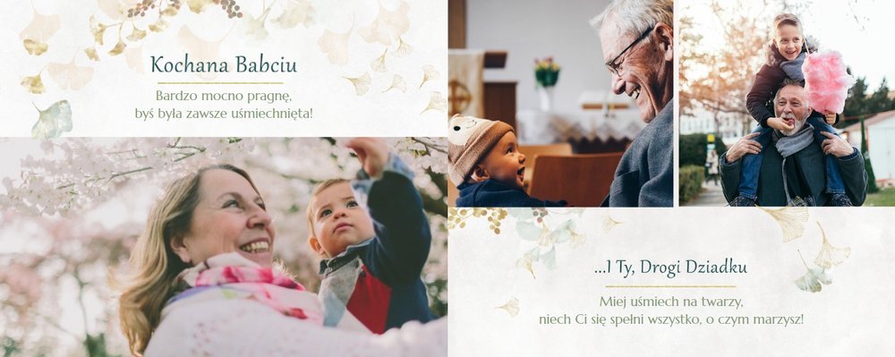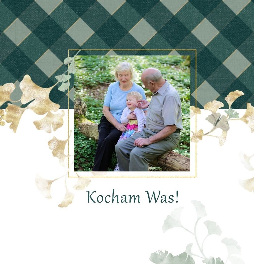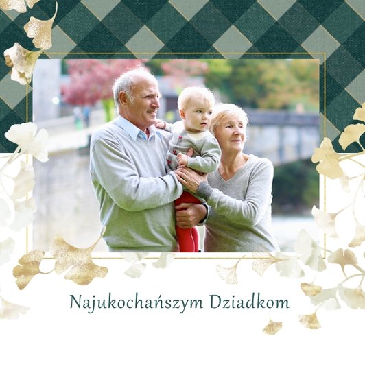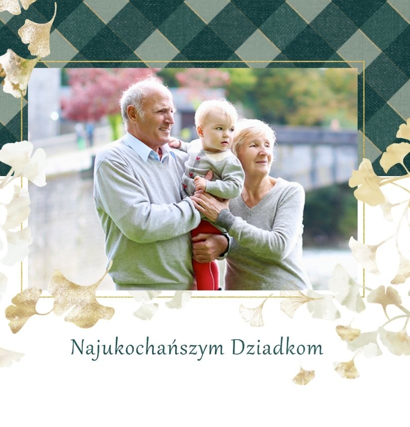 Szablon "Najukochańszym Dziadkom" to oryginalna kompozycja - połączenie ciemnej i eleganckiej kratki oraz wielobarwnego miłorzębu. Całość szablonu jest bardzo gustowna, co z całą pewnością przypadnie do gustu kochanym Dziadkom i idealnie wpasuje się w najzwyklejsze zdjęcia, również te z Twojego telefonu.