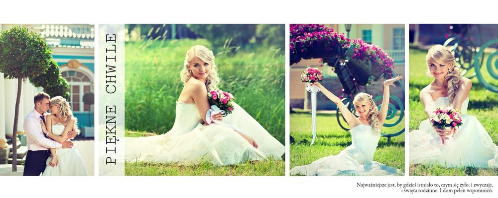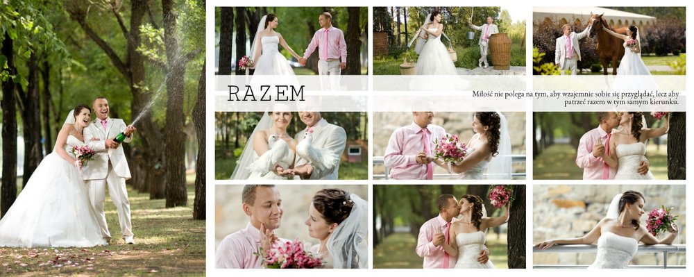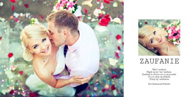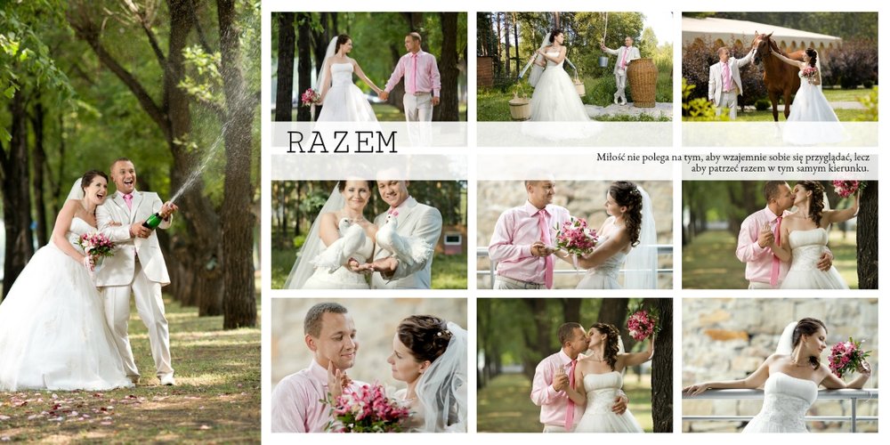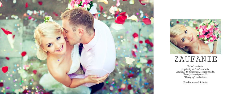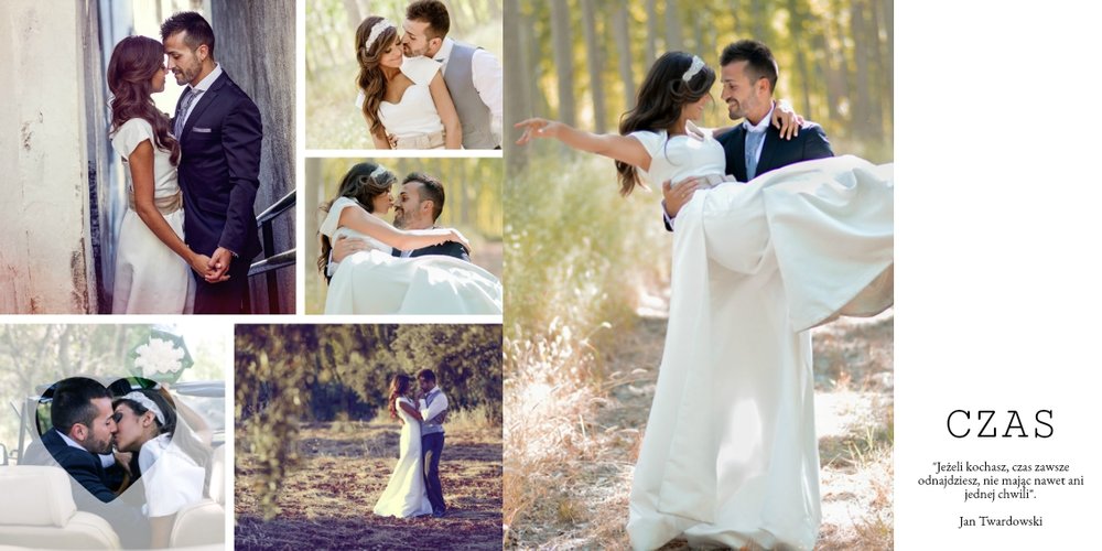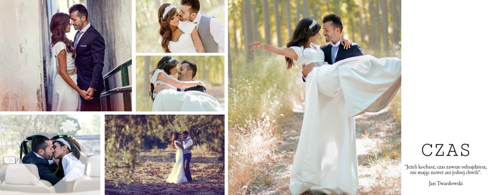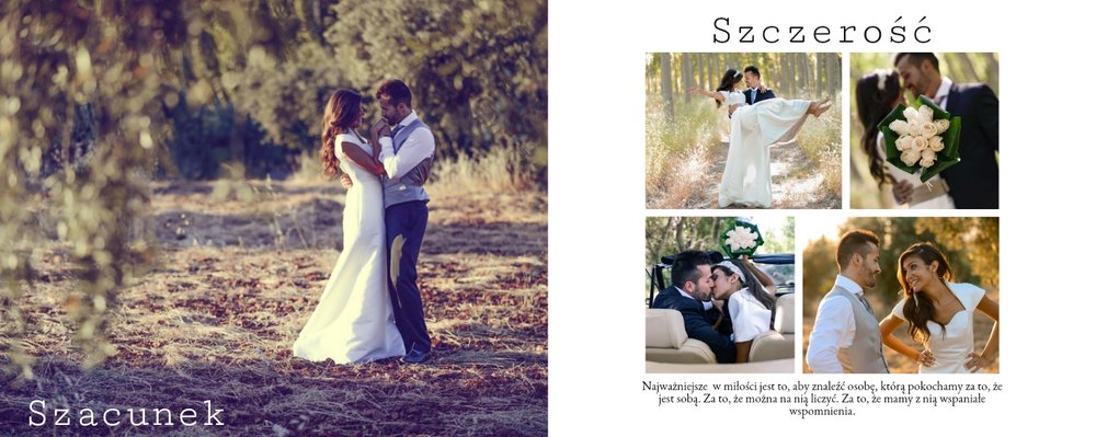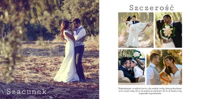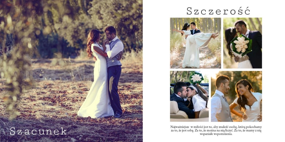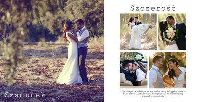 Piękny, prosty i nowoczesny szablon ślubny, dedykowany Parom szukającym wyjątkowej oprawy dla swoich ślubnych zdjęć. Postawiliśmy w nim na minimalizm: białe tła, ciekawe układy zdjęć i propozycje tekstów. Wybierzcie ulubione fotografie ze ślubu, wesela, sesji plenerowej i stwórzcie z nich Waszą piękną historię. Szablon idealny dla Młodych Par oraz jako prezent i podziękowanie dla Rodziców.