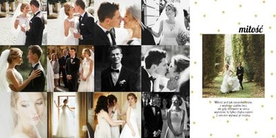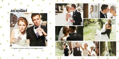 Z szablonem Złoty ślub zaprojektujesz piękną fotoksiążkę z Waszymi weselnymi zdjęciami. Złote ozdoby, proste układy i wyjątkowa grafika sprawią, że Wasze ślubne kadry będą wywoływać jeszcze większe emocje. Zaprojektuj Waszą ślubną fotoksiążkę, spraw oryginalną pamiątkę dla Ciebie i Twoich bliskich.