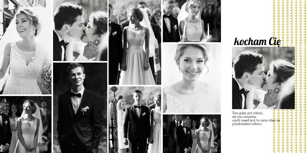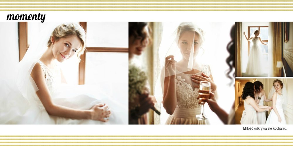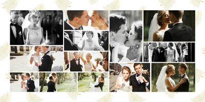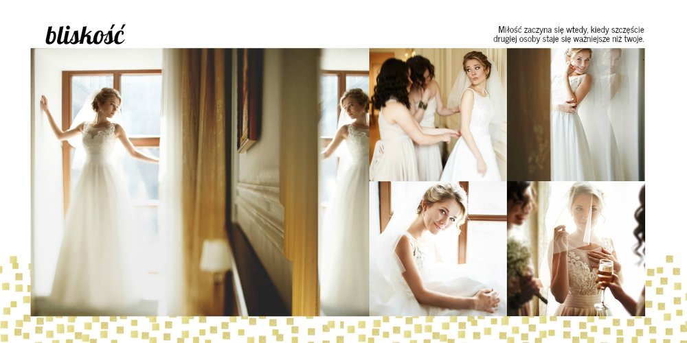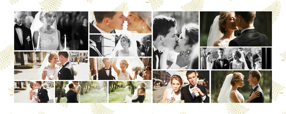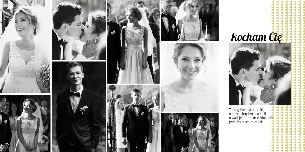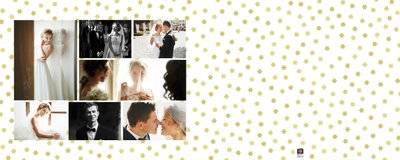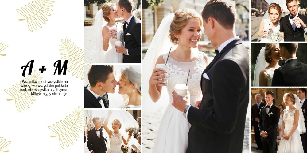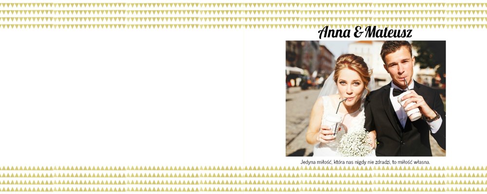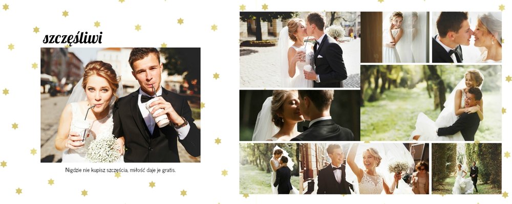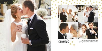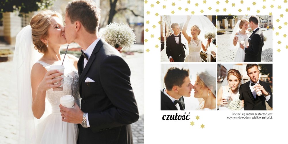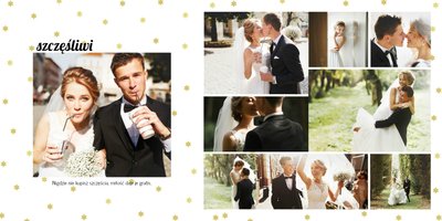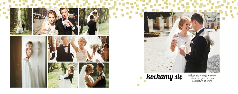 Z szablonem Złoty ślub zaprojektujesz piękną fotoksiążkę z Waszymi weselnymi zdjęciami. Złote ozdoby, proste układy i wyjątkowa grafika sprawią, że Wasze ślubne kadry będą wywoływać jeszcze większe emocje. Zaprojektuj Waszą ślubną fotoksiążkę, spraw oryginalną pamiątkę dla Ciebie i Twoich bliskich.