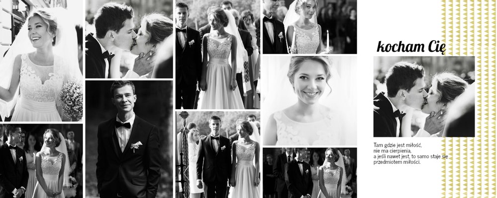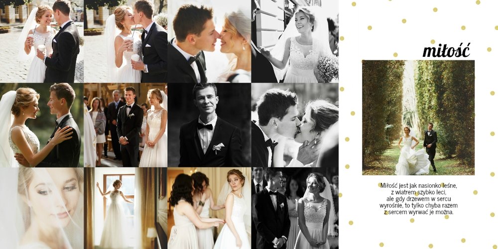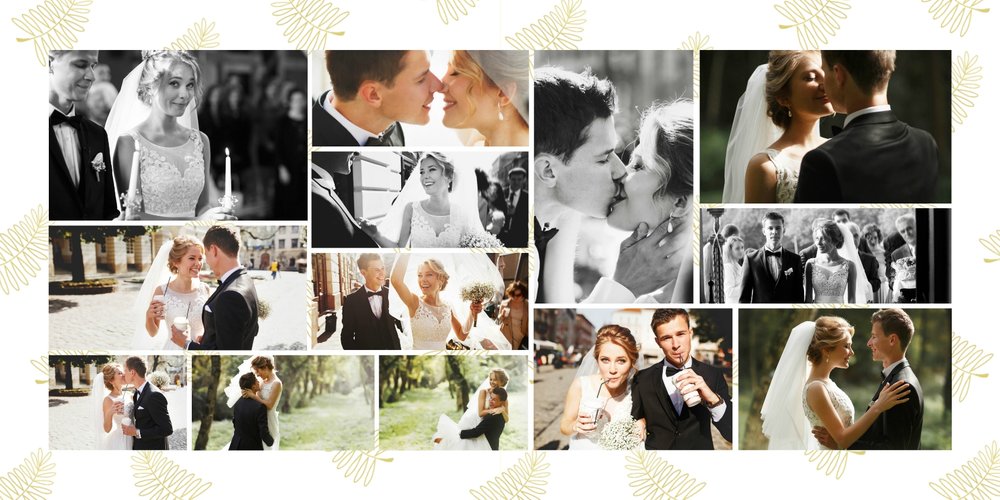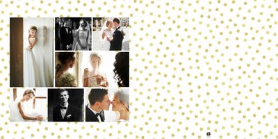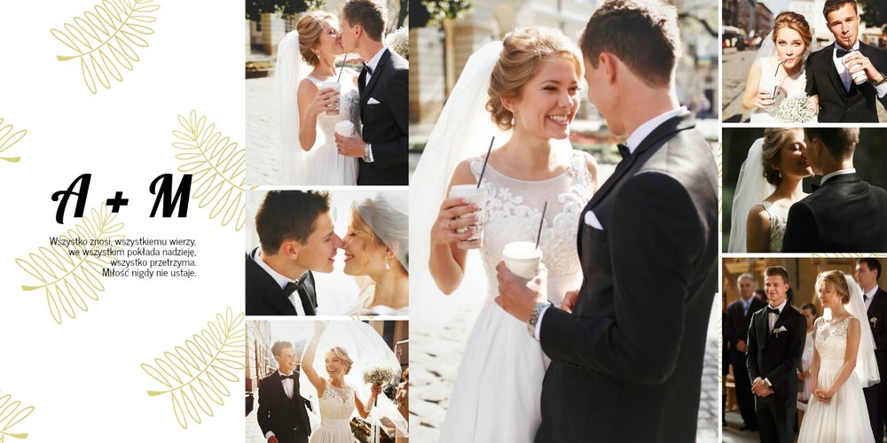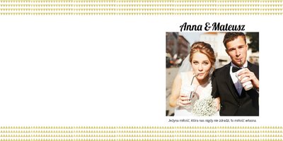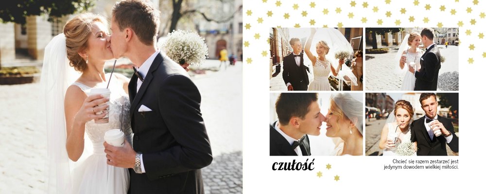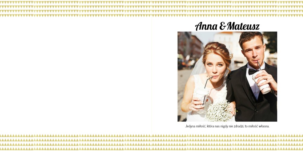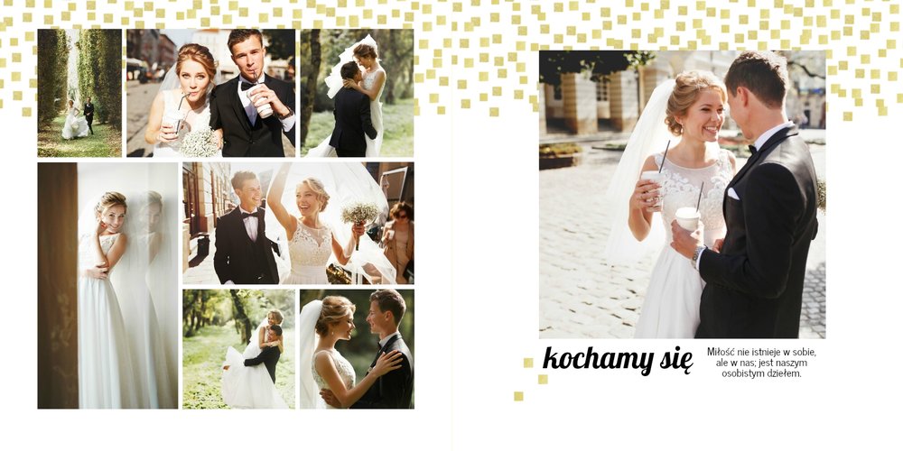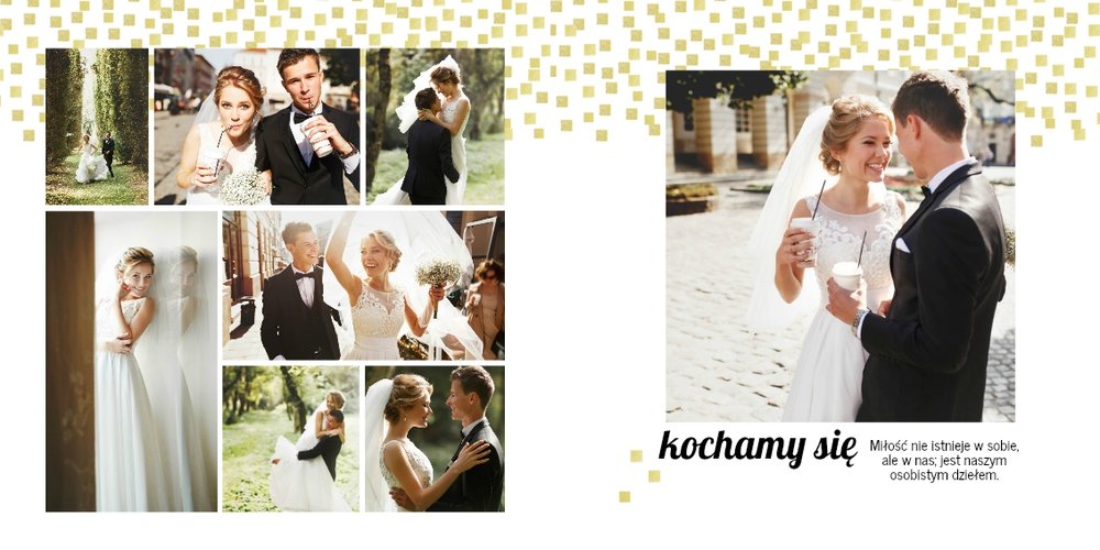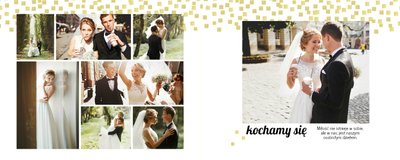 Z szablonem Złoty ślub zaprojektujesz piękną fotoksiążkę z Waszymi weselnymi zdjęciami. Złote ozdoby, proste układy i wyjątkowa grafika sprawią, że Wasze ślubne kadry będą wywoływać jeszcze większe emocje. Zaprojektuj Waszą ślubną fotoksiążkę, spraw oryginalną pamiątkę dla Ciebie i Twoich bliskich.