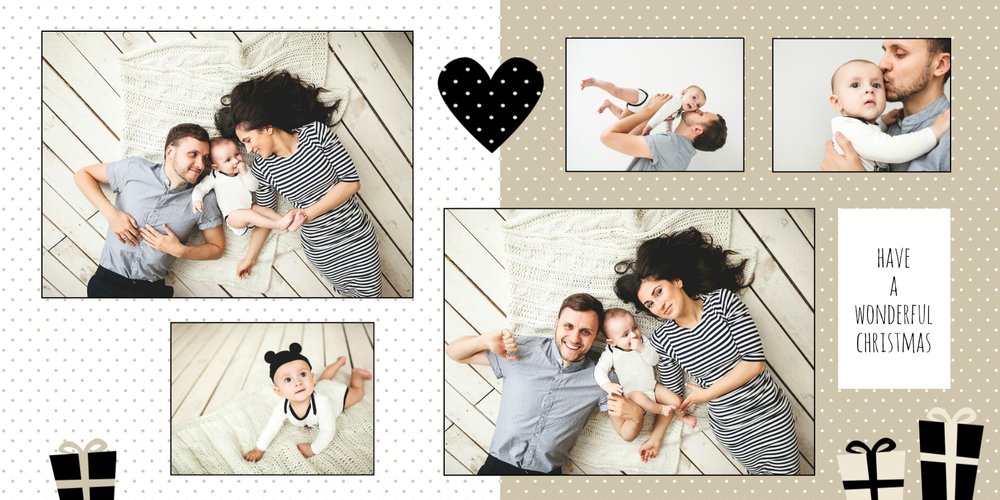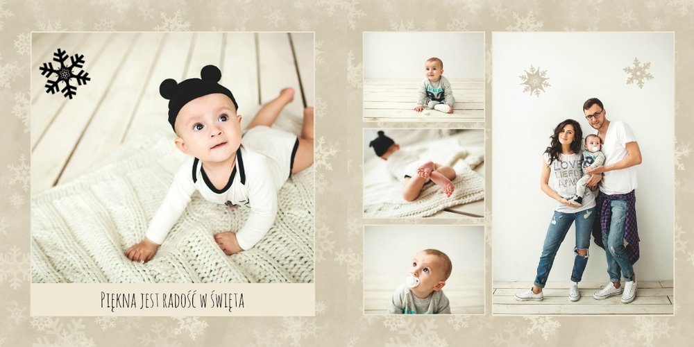 Rodzinne fotografie zasługują na piękną oprawę. Szablon delikatny, zawierający zimowe, świąteczne motywy oraz klimatyczne tła. Propozycje tekstów i życzeń można dowolnie modyfikować. Usuwając akcenty świąteczne, otrzymamy szablon uniwersalny, typu "everyday life".
