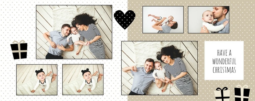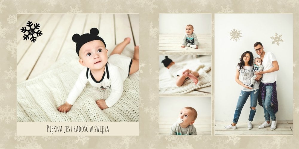Rodzinne fotografie zasługują na piękną oprawę. Szablon delikatny, zawierający zimowe, świąteczne motywy oraz klimatyczne tła. Propozycje tekstów i życzeń można dowolnie modyfikować. Usuwając akcenty świąteczne, otrzymamy szablon uniwersalny, typu "everyday life".
