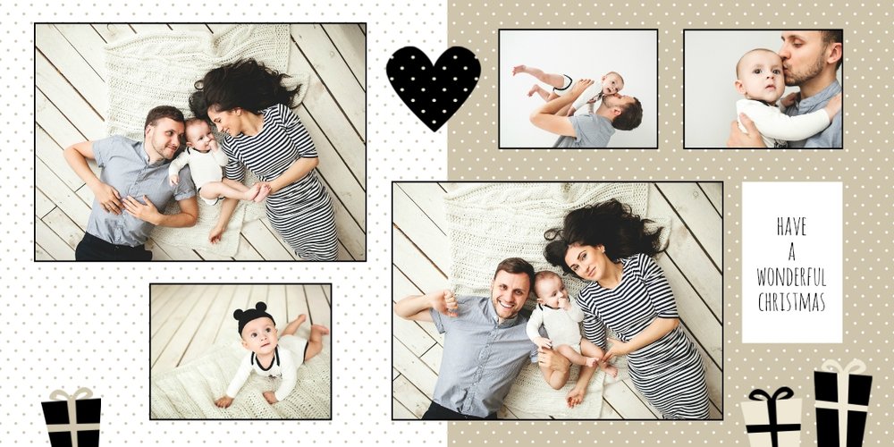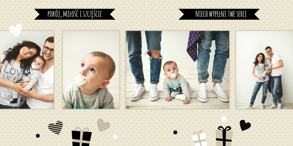 Rodzinne fotografie zasługują na piękną oprawę. Szablon delikatny, zawierający zimowe, świąteczne motywy oraz klimatyczne tła. Propozycje tekstów i życzeń można dowolnie modyfikować. Usuwając akcenty świąteczne, otrzymamy szablon uniwersalny, typu "everyday life".