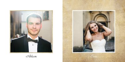 Wasze ślubne zdjęcia zasługują na oryginalną oprawę. Z szablonem Ona i On wszystkie kadry z najważniejszego dnia w Waszym życiu będą wyjątkowe. Minimalistyczna grafika, prosty układ zdjęć, jasne tła oraz charakterystyczna czcionka sprawią, że książka będzie piękną pamiątką na lata. Szablon Ona i On tworzy serię z szablonem Dla naszych Rodziców.