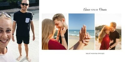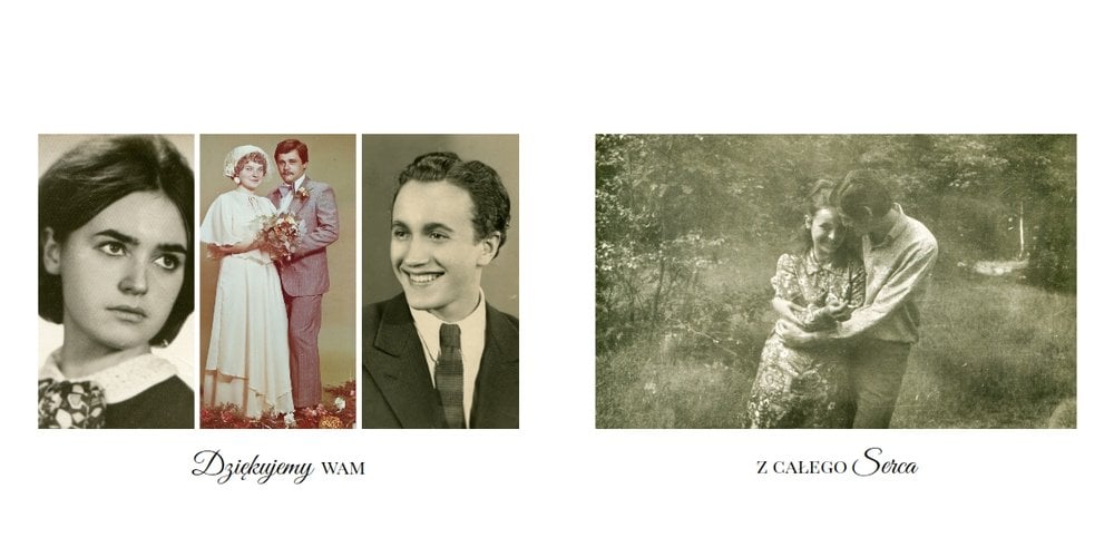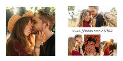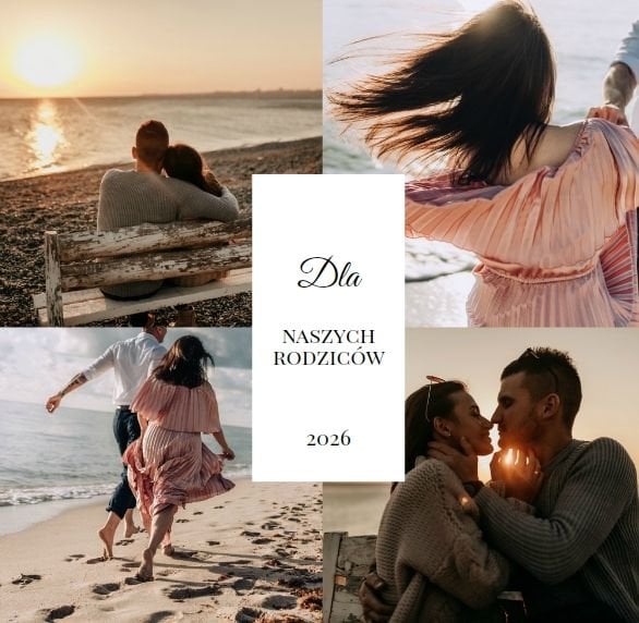Z szablonem Oryginalne podziękowania dla rodziców zaprojektujesz ekskluzywny fotoalbum jako prezent dla rodziców. Podziękowania dla rodziców nie muszą być nudne. Zaprojektujcie piękną książkę z Waszymi zdjęciami. Sprawcie Waszym bliskim radość i podarujcie im fotoalbum. Minimalistyczna grafika , oryginalne układy zdjęć i białe tła sprawią, że będzie to prezent wyjątkowy.