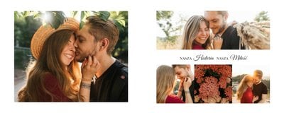 Z szablonem Oryginalne podziękowania dla rodziców zaprojektujesz ekskluzywny fotoalbum jako prezent dla rodziców. Podziękowania dla rodziców nie muszą być nudne. Zaprojektujcie piękną książkę z Waszymi zdjęciami. Sprawcie Waszym bliskim radość i podarujcie im fotoalbum. Minimalistyczna grafika , oryginalne układy zdjęć i białe tła sprawią, że będzie to prezent wyjątkowy.
