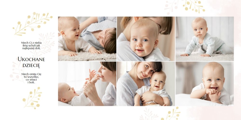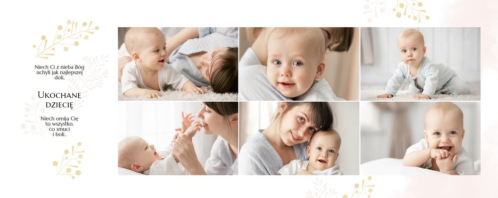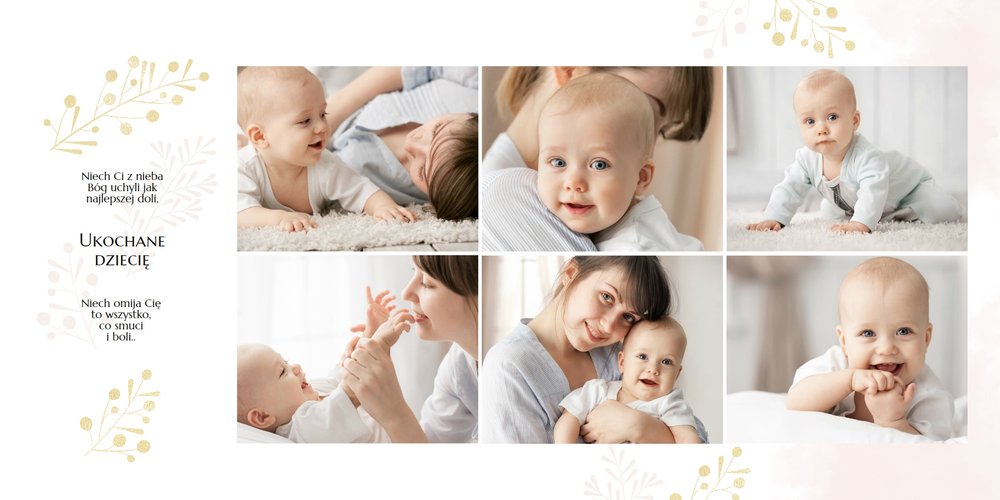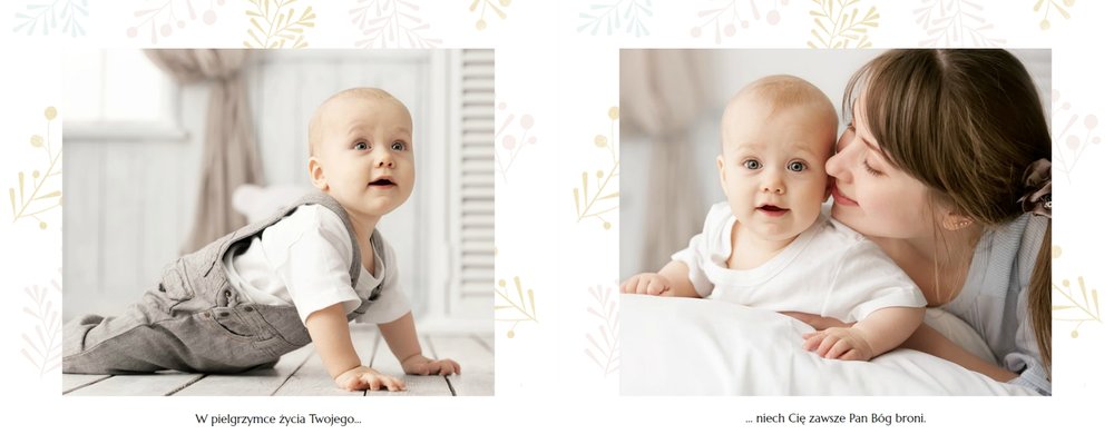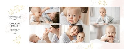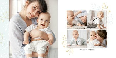 Chrzest to wydarzenie, które budzi emocje w rodzicach oraz w całej rodzinie zaangażowanej w uroczystość chrzcin. Zdecyduj się na podsumowanie tego wyjątkowo rodzinnego wydarzenia w fotoksiążce z szablonem Pamiątka Chrztu Świętego Dla Chłopca. Szablon zachowa rodzinne wspomnienia zamknięte w minimalistycznej formie oraz na kartach w pastelowymi i złotymi elementami graficznymi. Wewnątrz pamiątki chrztu znajduje się mnóstwo ramek na ulubione ujęcia oraz miejsce na najważniejsze informacje.