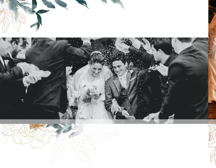 "Pamiątka ślubna dla bliskich" to propozycja uniwersalnego, lecz niebanalnego szablonu fotoalbumu. Pierwsza strona motywu zawiera dedykację z wyrazami wdzięczności dla obdarowywanych. Każda kolejna przedstawia przejrzyste układy komórek zdjęciowych, przyozdobione roślinnymi akcentami w kolorze złota i zieleni. Co więcej - estetyka i elegancja to nie jedyne plusy szablonu - jest on również bardzo łatwy do zaprojektowania.