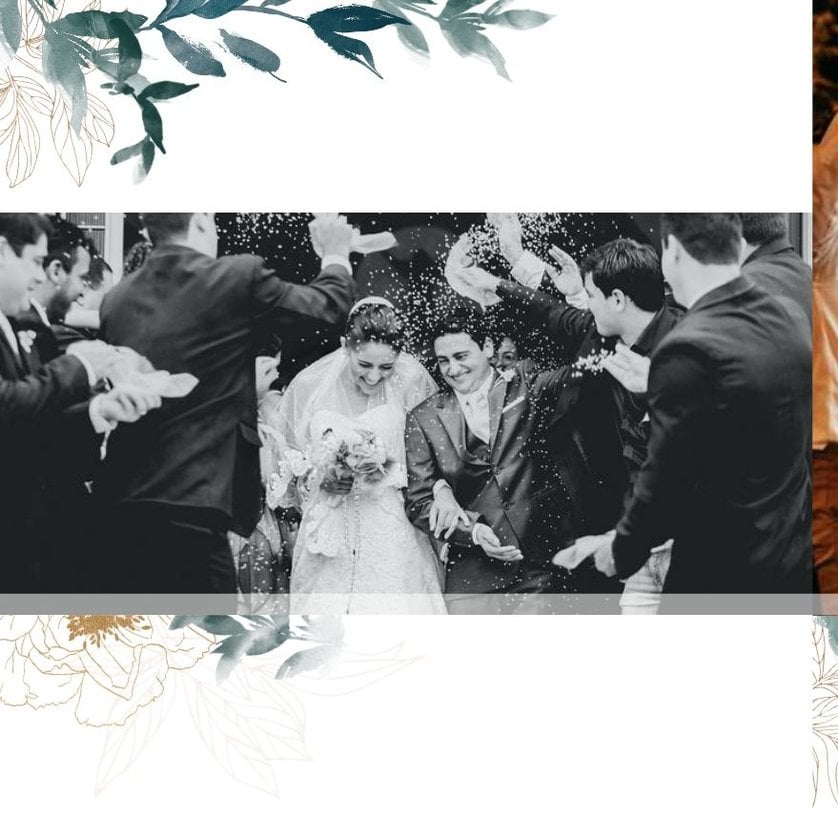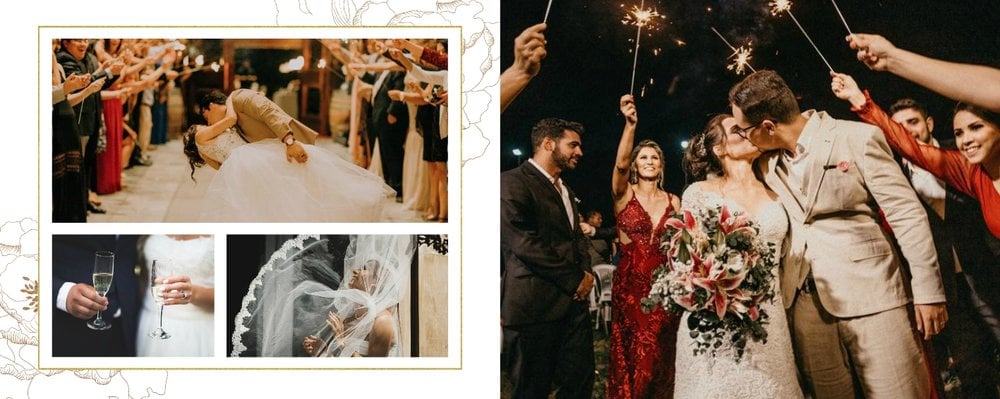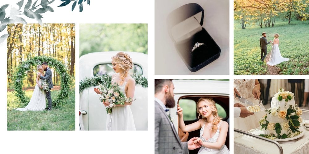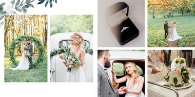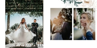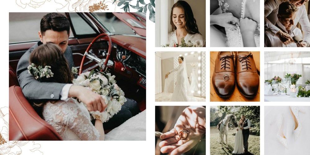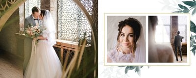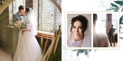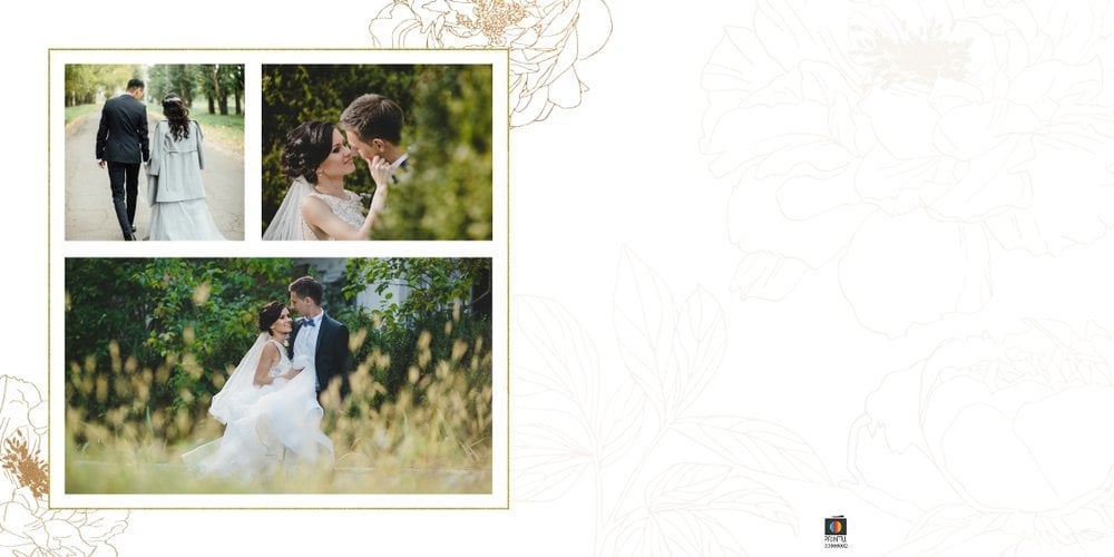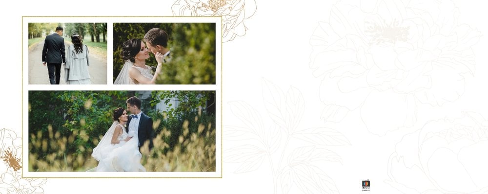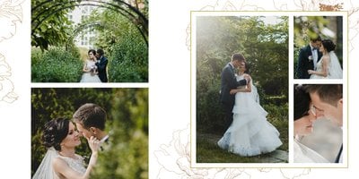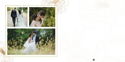 "Pamiątka ślubna dla bliskich" to propozycja uniwersalnego, lecz niebanalnego szablonu fotoalbumu. Pierwsza strona motywu zawiera dedykację z wyrazami wdzięczności dla obdarowywanych. Każda kolejna przedstawia przejrzyste układy komórek zdjęciowych, przyozdobione roślinnymi akcentami w kolorze złota i zieleni. Co więcej - estetyka i elegancja to nie jedyne plusy szablonu - jest on również bardzo łatwy do zaprojektowania.