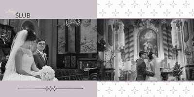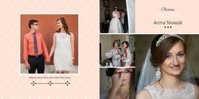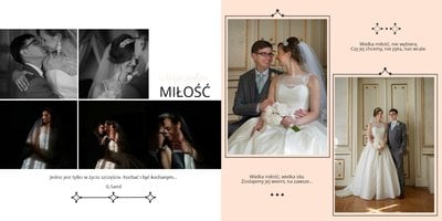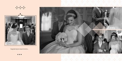 Szablon dedykowany Parom, chcącym stworzyć oryginalną pamiątkę ślubną w postaci fotoksiążki. Postawiliśmy w nim na połączenie bieli, czerni, szarości i różu, a całość oparliśmy o delikatne, ale finezyjne zdobienia, które będą perfekcyjnym wykończeniem stron pełnych ślubnych kadrów. Szablon idealny na pamiątkę ślubu oraz podziękowanie dla Rodziców.