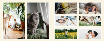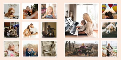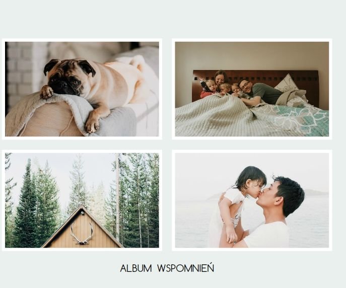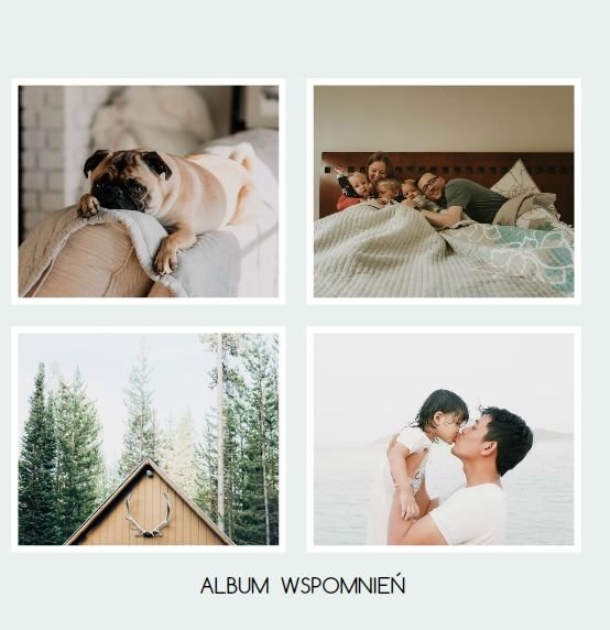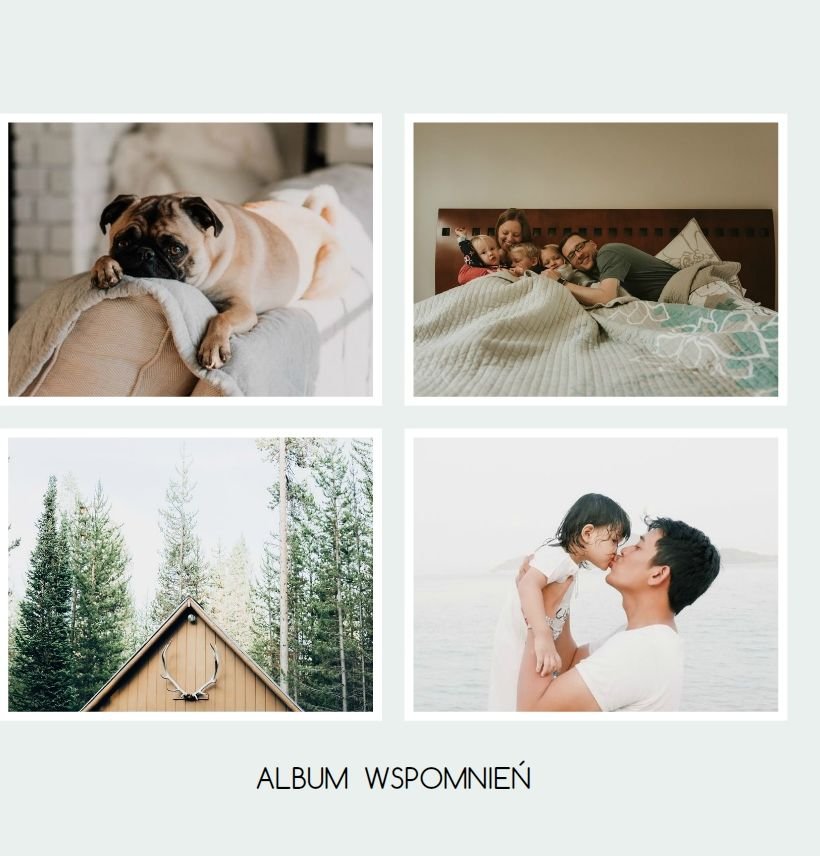 Albumy to skarbnica wspomnień, szczególnie tych rodzinnych. Fotoksiążka to świetna alternatywa, dlatego w szablonie "Pastelowy album na zdjęcia" znajdziesz mnóstwo miejsca na fotografie, które dla Ciebie i Twojej rodziny są najważniejsze. Stworzony na podstawie szablonu "Tradycyjny album na zdjęcia" z zachowaniem minimalistycznego stylu, wzbogacony paletą ośmiu pasujących do siebie kolorów. Jasna, pastelowa tęcza idealnie skomponuje się z Twoimi ulubionymi zdjęciami, podkreślając ich urok, a białe ramki i minimalistyczny układ nadadzą im delikatności.