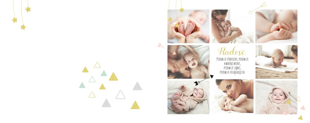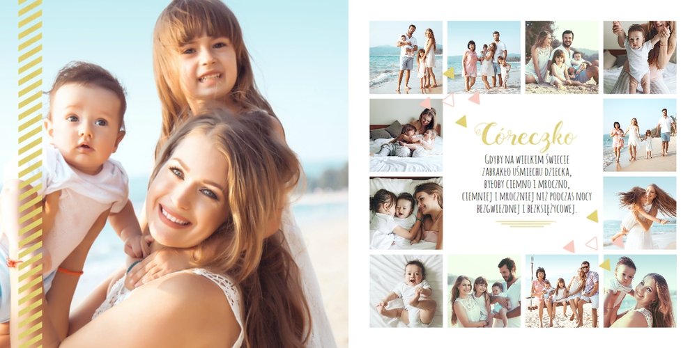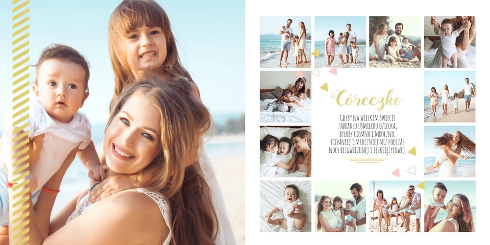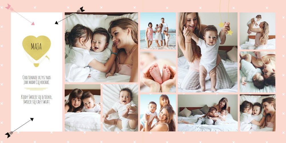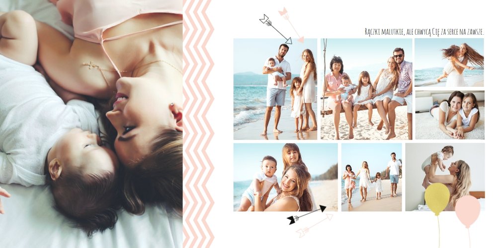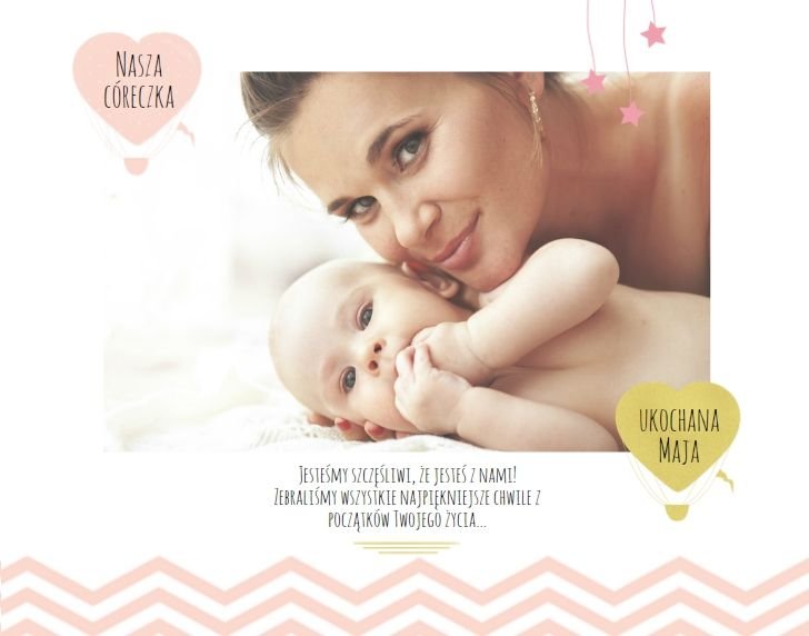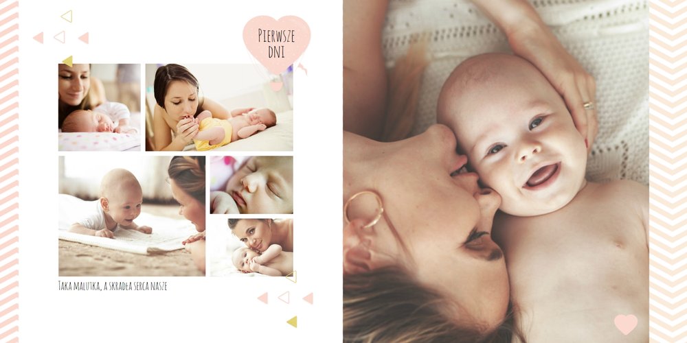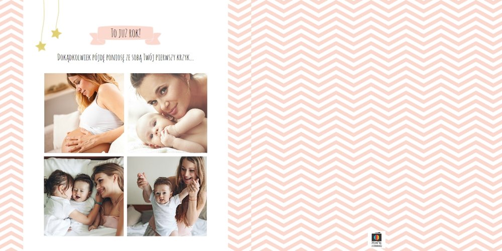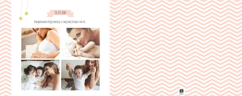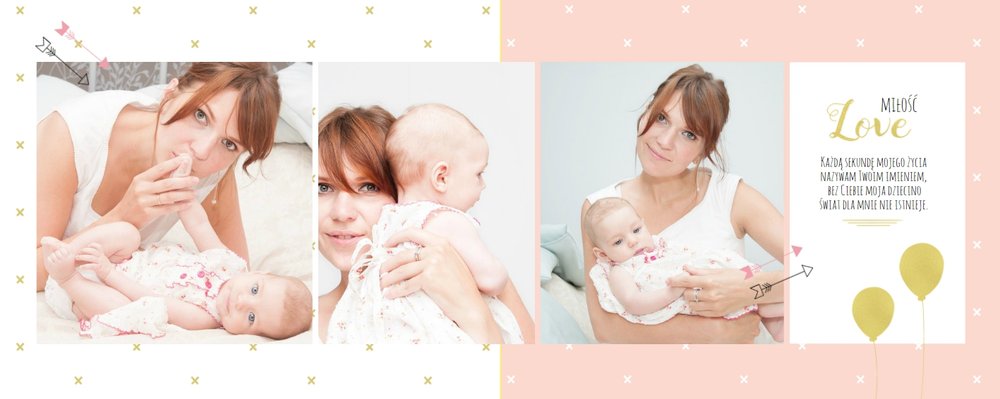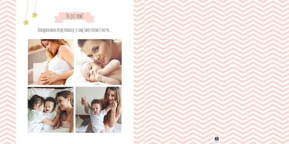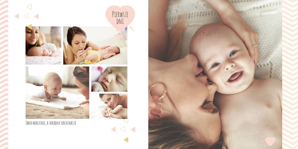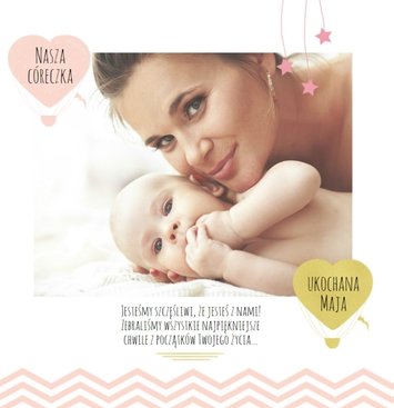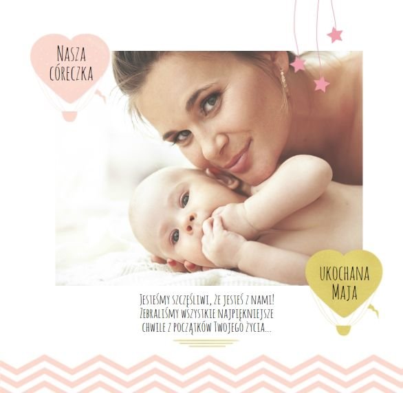 Pierwszy rok córki, to szablon dedykowany młodym rodzicom uroczych dziewczynek, którzy pragną uwiecznić pierwsze miesiące z życia córki. Delikatne kolory różu i beżu, mnóstwo miejsca na cudowne zdjęcia, oryginalne układy i dziecięca grafika sprawią, że fotoalbum z tym szablonem będzie piękną pamiątką na lata.