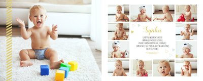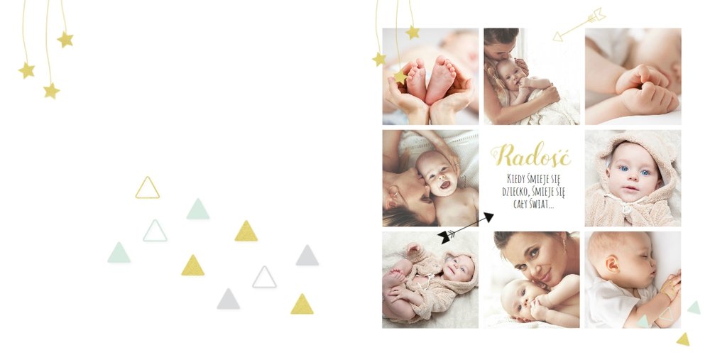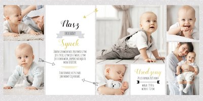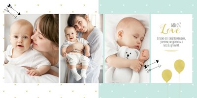 Pierwszy rok syna, to szablon dedykowany młodym rodzicom uroczych chłopców, którzy pragną uwiecznić pierwsze miesiące z życia syna. Delikatne kolory mięty i szarości, mnóstwo miejsca na cudowne zdjęcia, oryginalne układy i dziecięca grafika sprawią, że fotoalbum z tym szablonem będzie piękną pamiątką na lata.