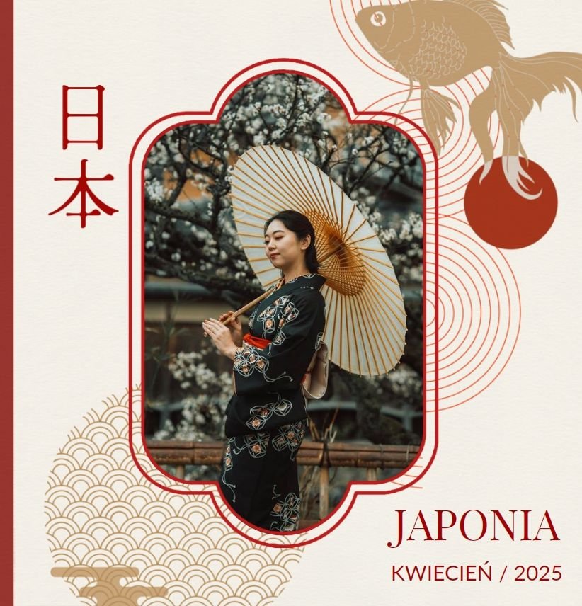 Styl szablonu to pomieszanie tradycji z nowoczesnością. Na każdej stronie projektu odnajdziesz orientalne wzory i charakterystyczne ilustracje, nawiązujące do japońskiej kultury. Maneki-neko, świątynie, rybki koi, fale - to tylko kilka z wielu motywów, które możesz znaleźć na stronach fotoksiążki. Szablon "Podróż do Japonii" wypełniony jest tłami z elementami kolażu zainspirowanymi japońską sztukę składania papieru - origami. Nazwy głównych turystycznych kierunków wyjazdu do Japonii (takich jak Tokio, Kioto, Osaka czy Nara), zapisane są zarówno w Kanji jak i po polsku. Możesz więc śmiało dostosować je pod swój plan podróży.