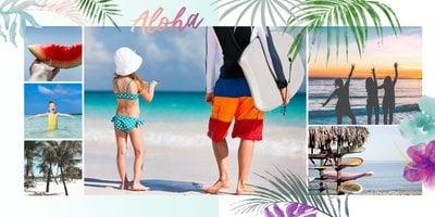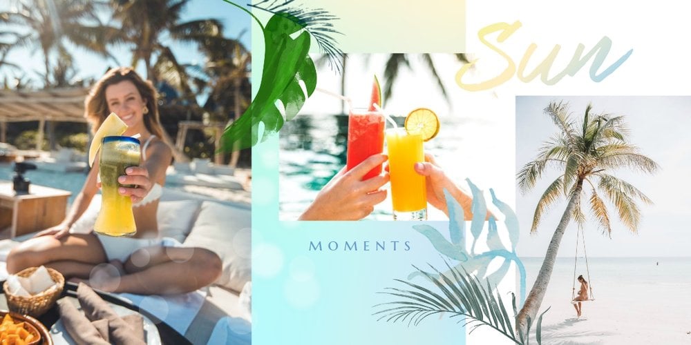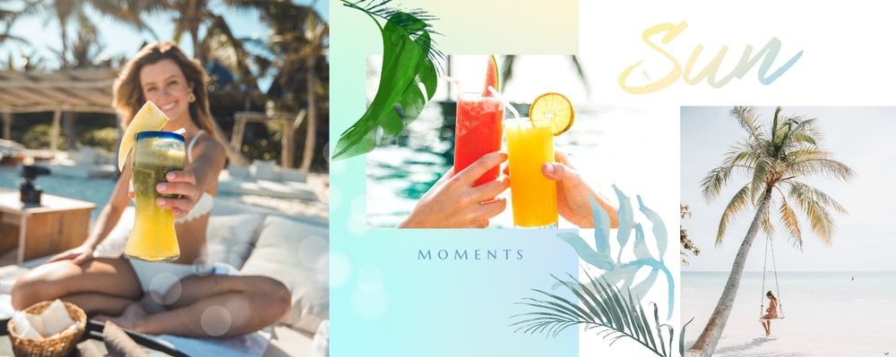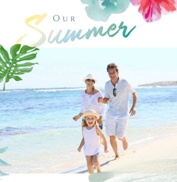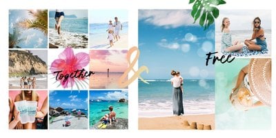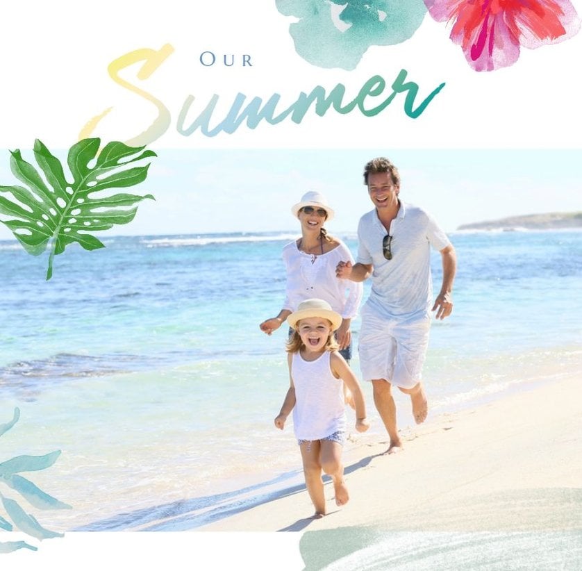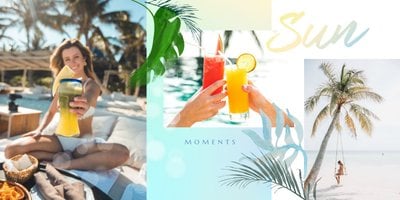 Minimalistyczna forma szablonu pozwala na zachowanie zdjęć z każdej strony świata - ważne aby fotografie pokazywały jak świetnie bawiłeś się na wakacjach życia. Całość dopełniają napisy oraz graficzne elementy symbolizujące lato w pełni.
