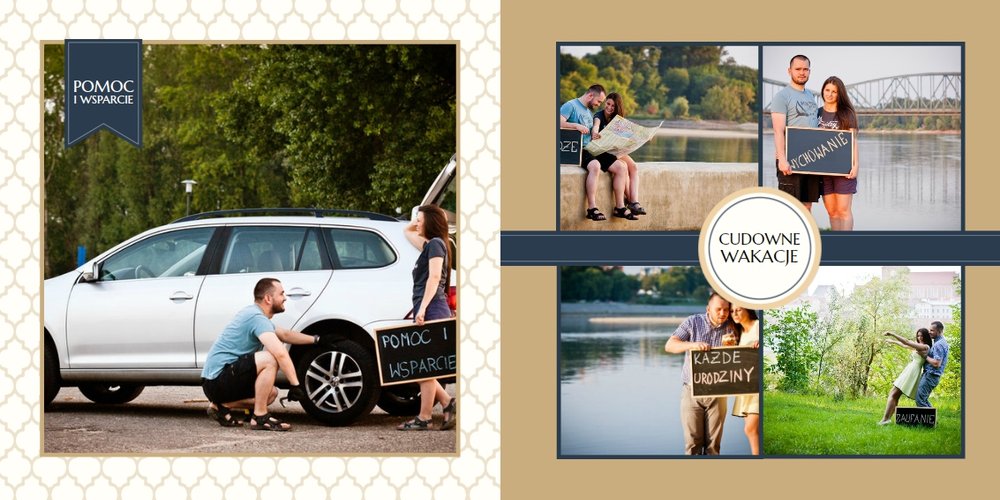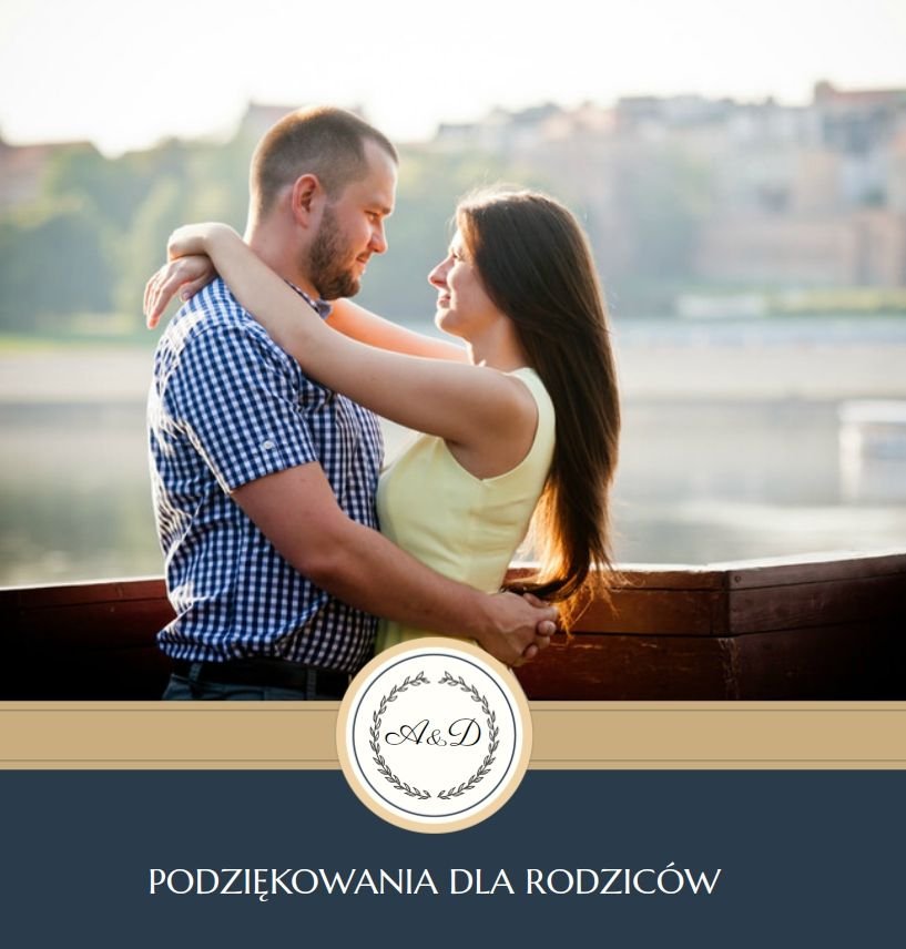 Szablon dedykowany jest Młodym Parom, które w oryginalny sposób pragną podziękować Rodzicom za miłość i trud wychowania. Strony utrzymane są w kolorach złota, beżu i granatu, którym elegancji dodają piękne ornamenty i ozdobne ramki. Szablon idealny jako podziękowanie dla Rodziców.