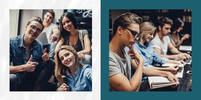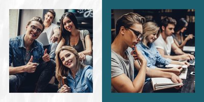 Szablon fotoalbumu "Podziękowania maturzystów" to elegancki projekt graficzny, który zawiera miejsca na najlepsze szkolne ujęcia, dedykacje, słowa wdzięczności i odręczne podpisy wszystkich uczniów.