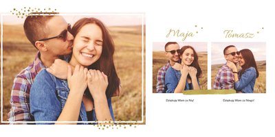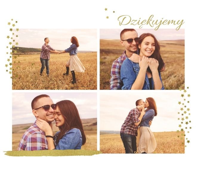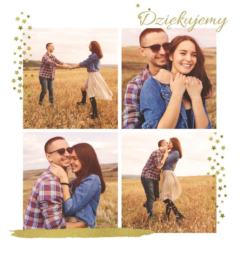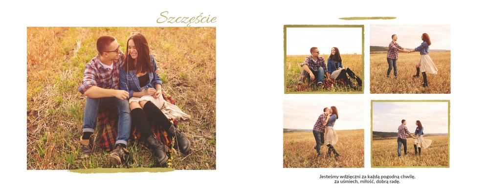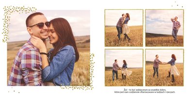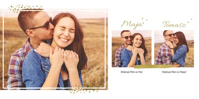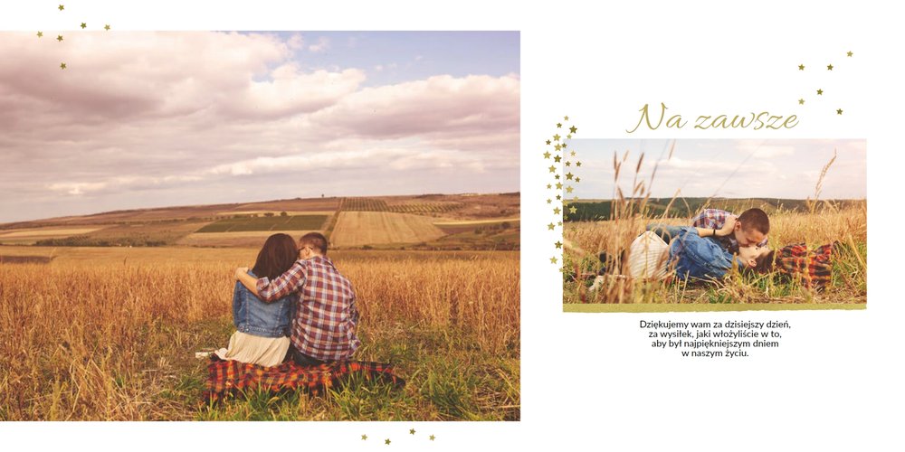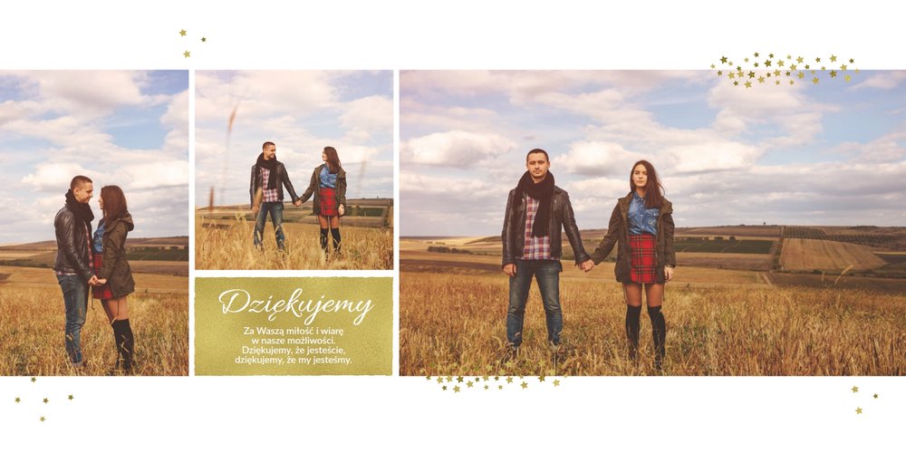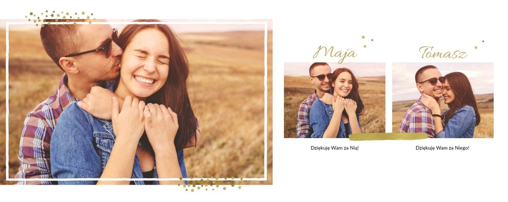 Fotoalbum z szablonem Podziękowania, stanie się wyjątkową pamiątką dla Waszych Rodziców. Minimalistyczny charakter, przepiękna grafika, złote ozdoby i ornamenty, oryginalne i pełne wdzięczności cytaty, przyozdobią Wasze piękne zdjęcia. Spraw, żeby podziękowania dla rodziców, składane w tym najważniejszym dniu, były wyjątkowe!