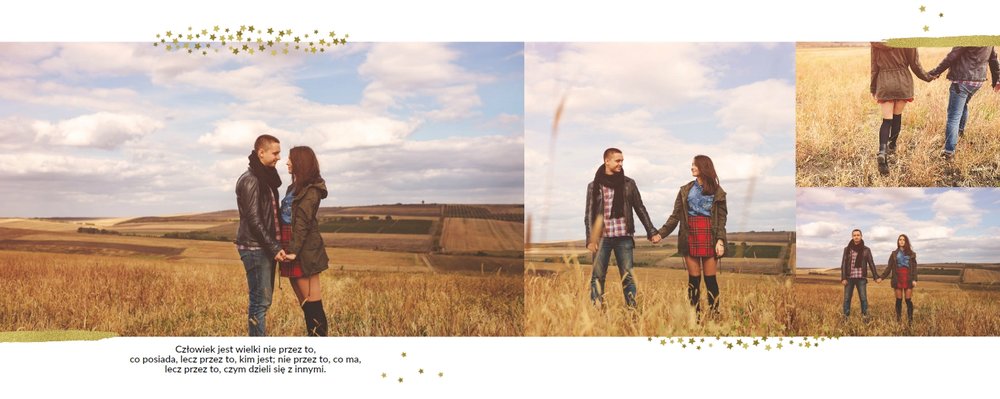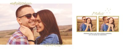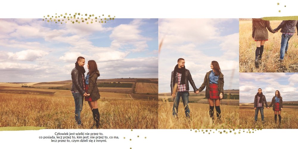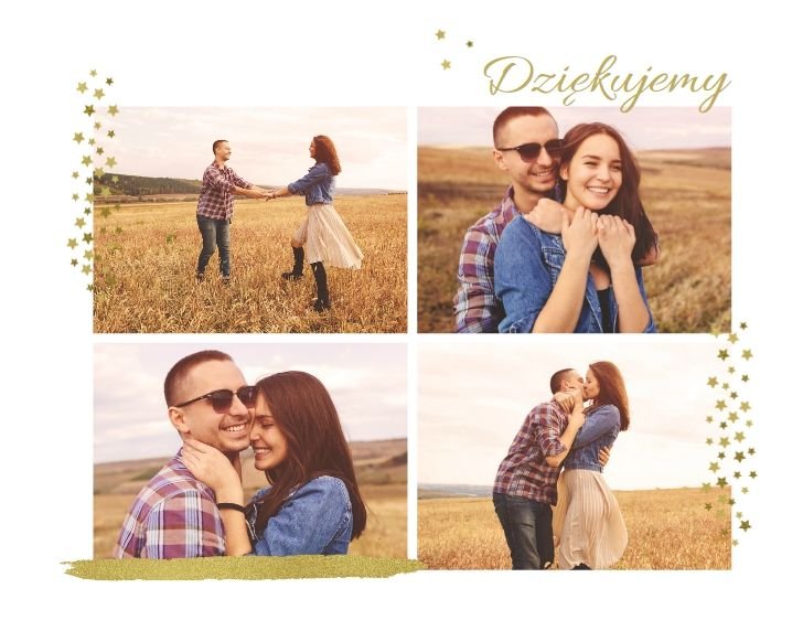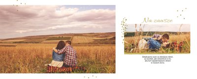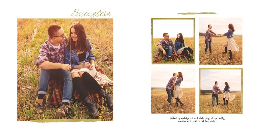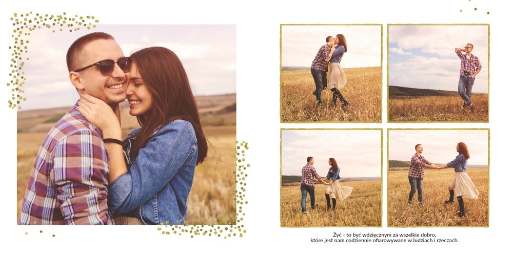 Fotoalbum z szablonem Podziękowania, stanie się wyjątkową pamiątką dla Waszych Rodziców. Minimalistyczny charakter, przepiękna grafika, złote ozdoby i ornamenty, oryginalne i pełne wdzięczności cytaty, przyozdobią Wasze piękne zdjęcia. Spraw, żeby podziękowania dla rodziców, składane w tym najważniejszym dniu, były wyjątkowe!
