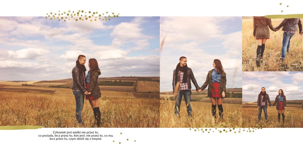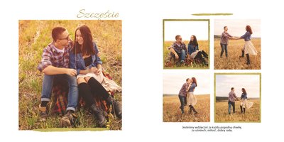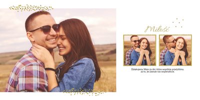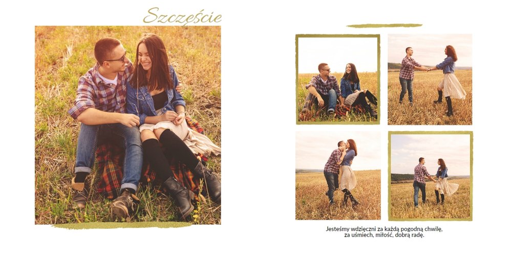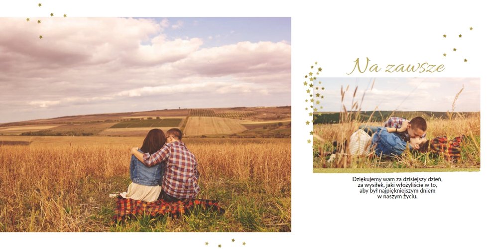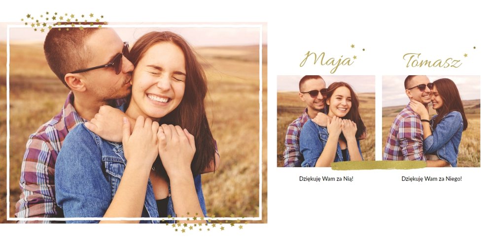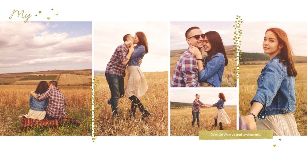 Fotoalbum z szablonem Podziękowania, stanie się wyjątkową pamiątką dla Waszych Rodziców. Minimalistyczny charakter, przepiękna grafika, złote ozdoby i ornamenty, oryginalne i pełne wdzięczności cytaty, przyozdobią Wasze piękne zdjęcia. Spraw, żeby podziękowania dla rodziców, składane w tym najważniejszym dniu, były wyjątkowe!