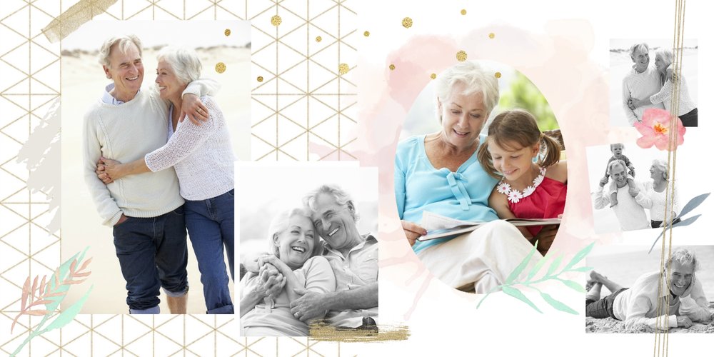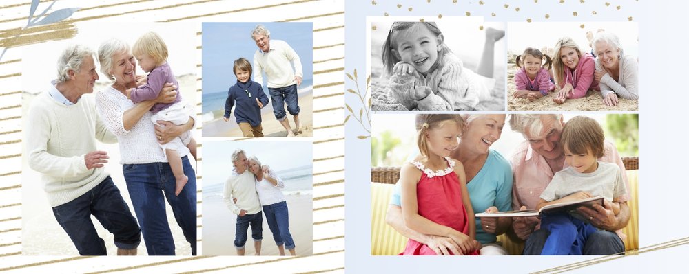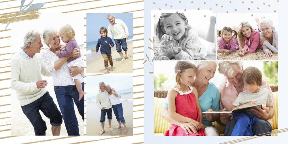 Szablon Prezent dla Babci i Dziadka idealnie sprawdzi się przy projektowaniu wyjątkowego prezentu dla dziadków. Piękna grafika i wzruszające sentencje sprawią, że fotoalbum z tym szablonem będzie pamiątką na długie lata. Wybierz najbardziej wzruszające fotografie i zaprojektuj Prezent dla Babci i Dziadka.