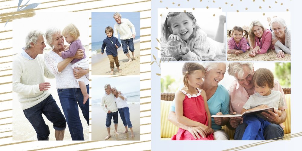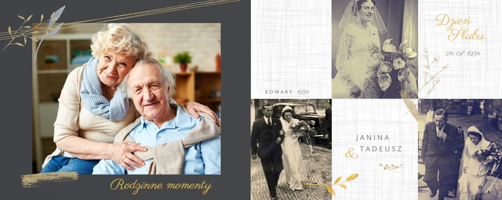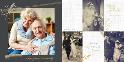 Szablon Prezent dla Babci i Dziadka idealnie sprawdzi się przy projektowaniu wyjątkowego prezentu dla dziadków. Piękna grafika i wzruszające sentencje sprawią, że fotoalbum z tym szablonem będzie pamiątką na długie lata. Wybierz najbardziej wzruszające fotografie i zaprojektuj Prezent dla Babci i Dziadka.