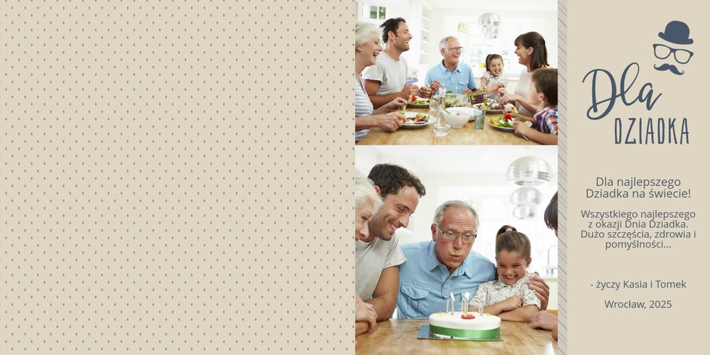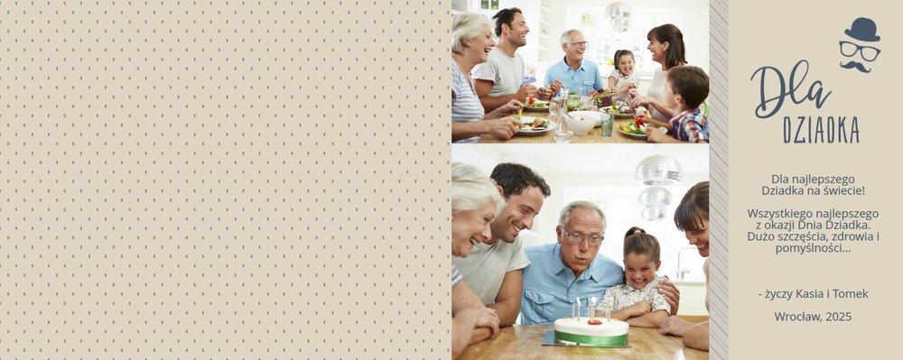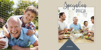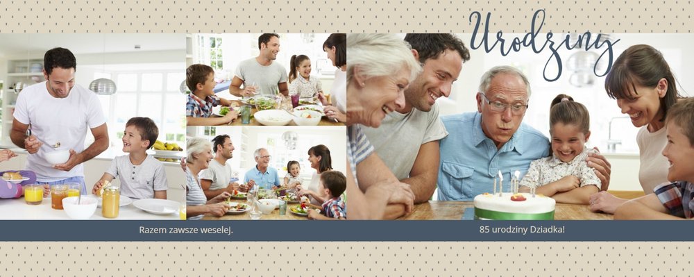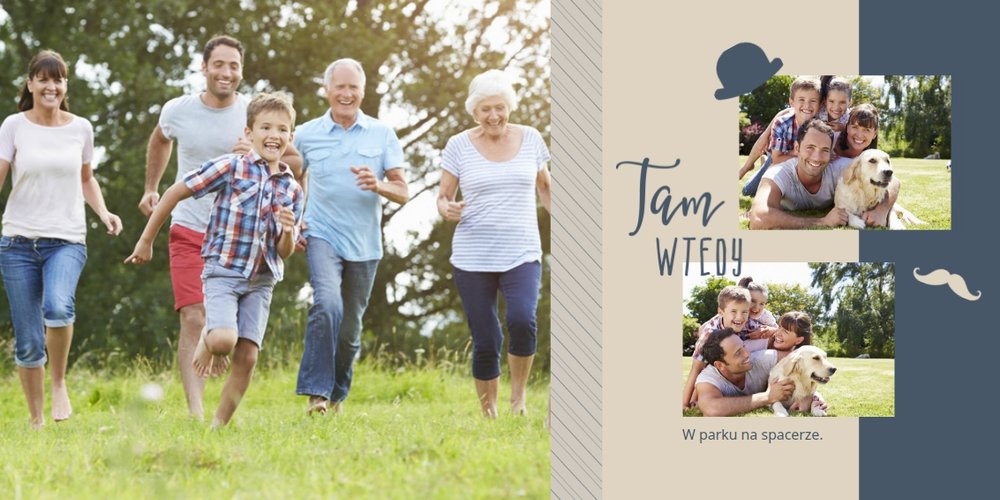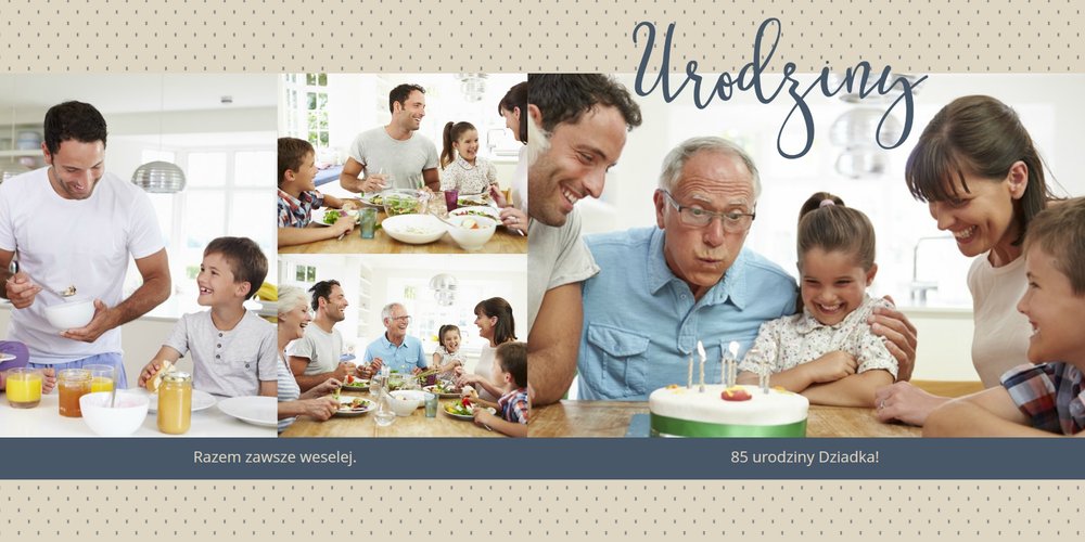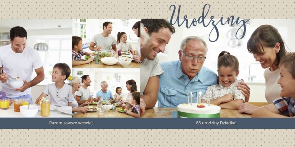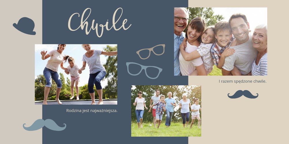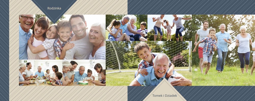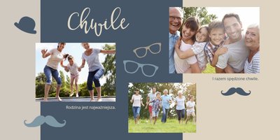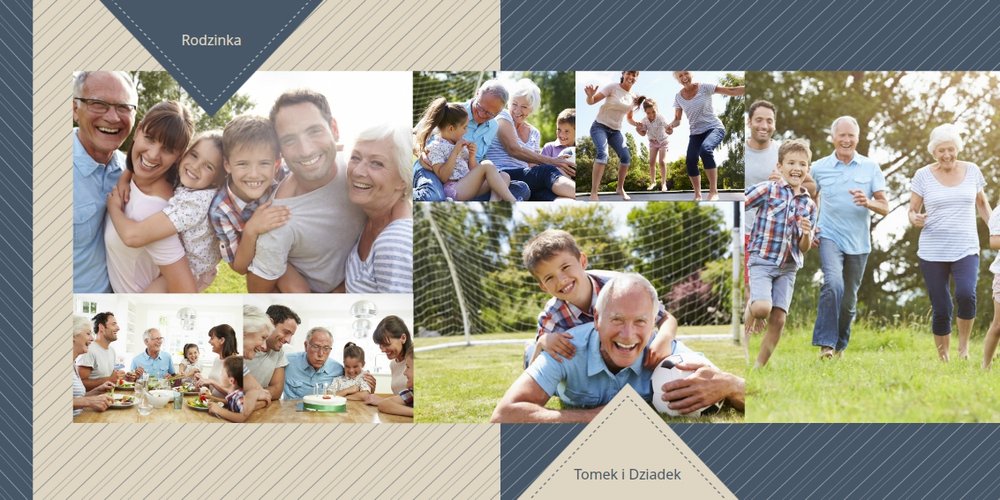 Piękne, rodzinne chwile warto celebrować, utrwalać w pamięci i zatrzymywać na zdjęciach. Fotoalbum pełny wnuków i bliskiej rodziny będzie najpiękniejszym prezentem dla naszego dziadka. Szablon "Dla kochanego Dziadka" dedykujemy wszystkim wnukom, które chcą podarować mu coś wyjątkowego. Tła beżowe i granatowe idealnie skomponują się z rodzinnymi fotografiami lub skanami zdjęć. Fotoalbum zaprojektowany z tym szablonem będzie to idealny prezent na Dzień Dziadka oraz wiele ważnych okazji.