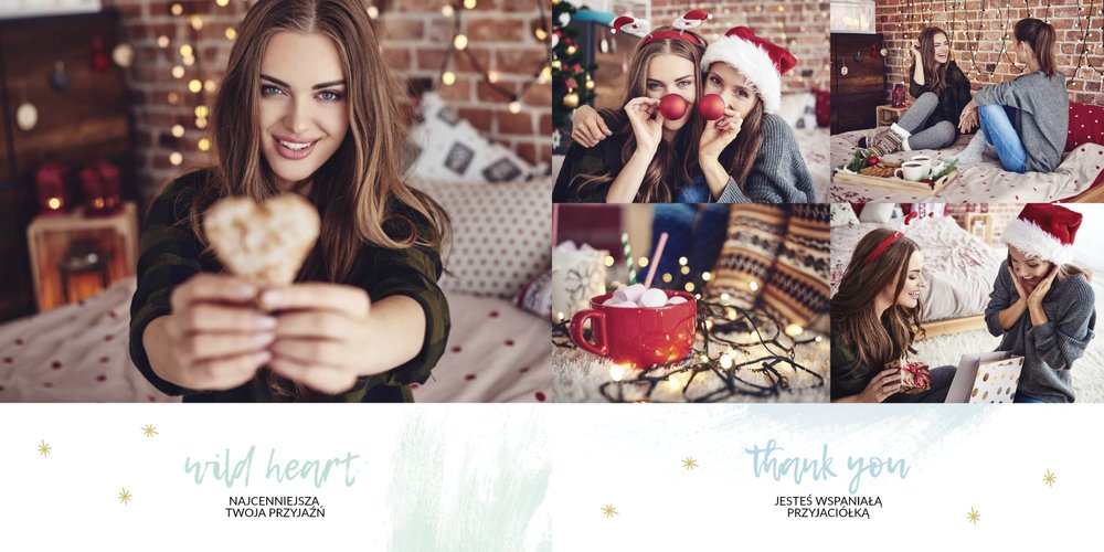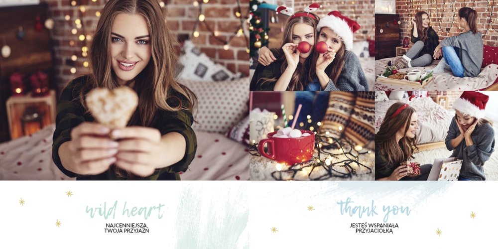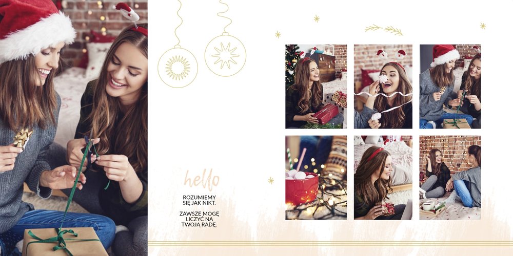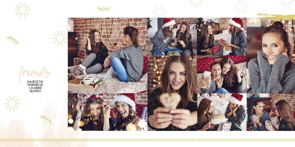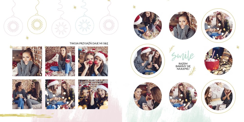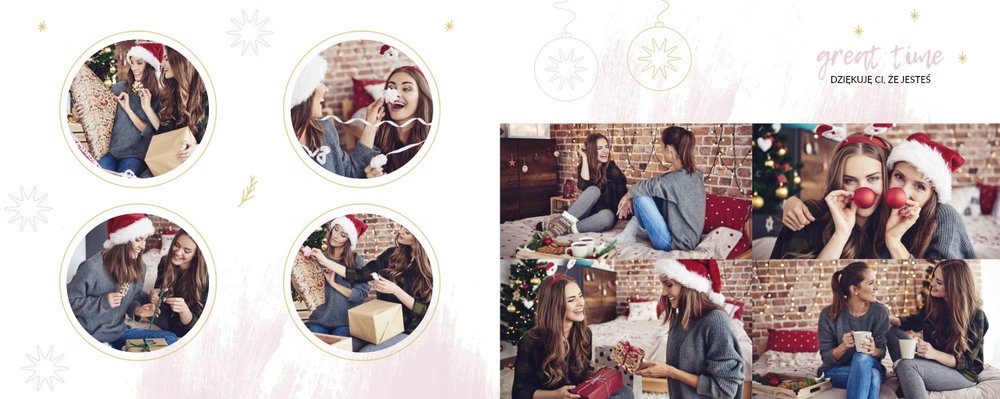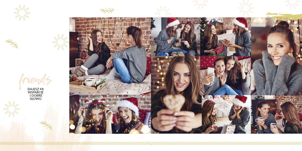 Szablon Prezent dla przyjaciółki na święta jest idealnym pomysłem na prezent dla najbliższej Ci osoby. Książka z tym szablonem będzie doskonałym świątecznym podarunkiem. Dzięki fotoalbumowi podarujesz swojej przyjaciółce niezwykłą pamiątkę. Minimalistyczny świąteczny szablon, mnóstwo miejsca na zdjęcia i życzenia sprawią, że fotoalbum z tym szablonem będzie doskonałym prezentem na święta.
