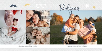 Piękne, rodzinne chwile warto celebrować i utrwalać w pamięci. Fotoalbum pełny zdjęć bliskiej rodziny będzie najpiękniejszym prezentem dla każdego Taty. Szablon "Dla Taty" dedykujemy wszystkim, którzy chcą podarować swojemu Tacie coś wyjątkowego. Szare delikatne tła idealnie skomponują się z rodzinnymi fotografiami lub skanami zdjęć. Fotoalbum zaprojektowana z tym szablonem będzie idealnym prezentem na Dzień Taty oraz wiele innych ważnych okazji.