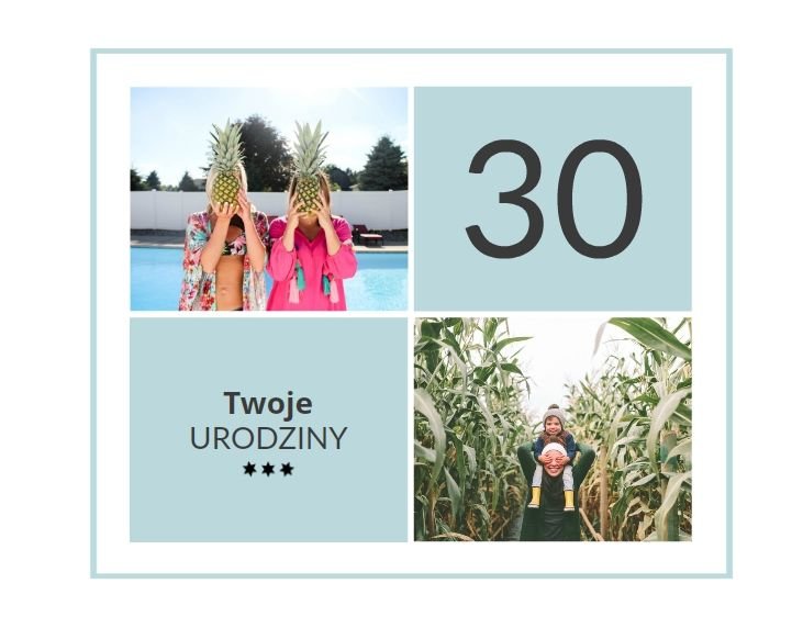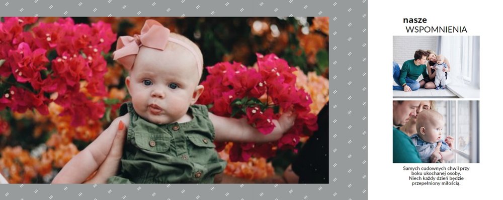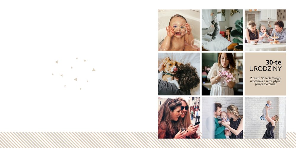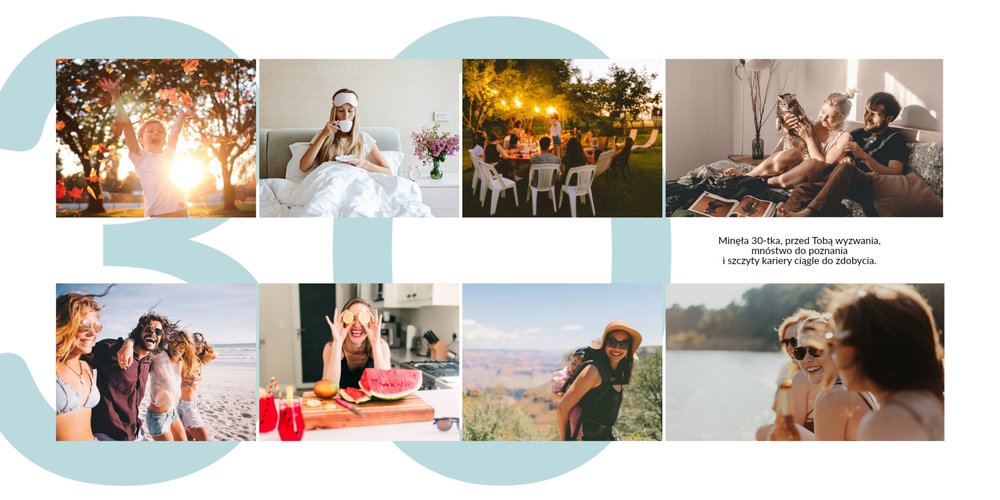 Prezent na 30 urodziny to szablon, z którym zaprojektujesz wyjątkowy fotoalbum z najpiękniejszymi wspomnieniami zachowanymi na fotografiach. Zbierz najważniejsze zdjęcia bliskiej Ci osoby i skomponuj oryginalny album! Nietuzinkowa grafika, mnóstwo miejsca na fotografie oraz wzruszające życzenia sprawią, że fotoalbum z szablonem Prezent na 30 urodziny stanie się cudowną pamiątką na wiele, wiele lat!