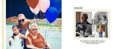 Złote Gody to szablon, z którym zaprojektujesz wyjątkową pamiątkę z obchodów 50. rocznicy ślubu Twoich Rodziców. Fotoalbum z tym szablonem będzie wyjątkowym prezentem upamiętniającym to ważne, rodzinne wydarzenie. Przepiękna grafika, oryginalne układy zdjęć i wzruszające życzenia sprawią, że książka będzie wywoływała wspomnienia przez wiele, wiele lat. Spraw radość Twoim Rodzicom i zaprojektuj fotoalbum z szablonem Złote Gody.